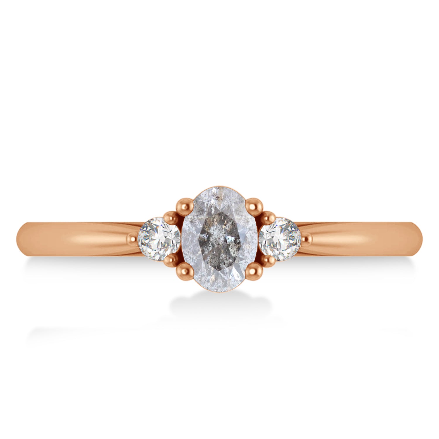 Oval Salt & Pepper & White Diamond Three-Stone Engagement Ring 14k Rose Gold (0.60ct)