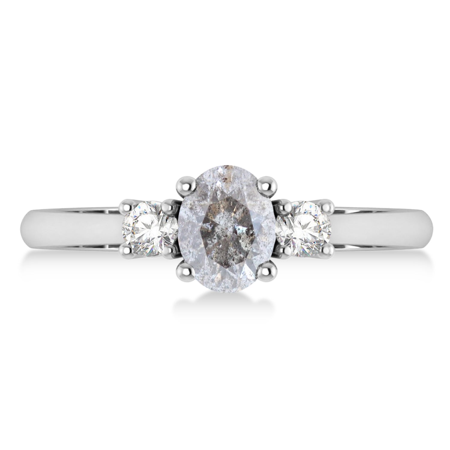 Oval Salt & Pepper & White Diamond Three-Stone Engagement Ring 14k White Gold (1.20ct)
