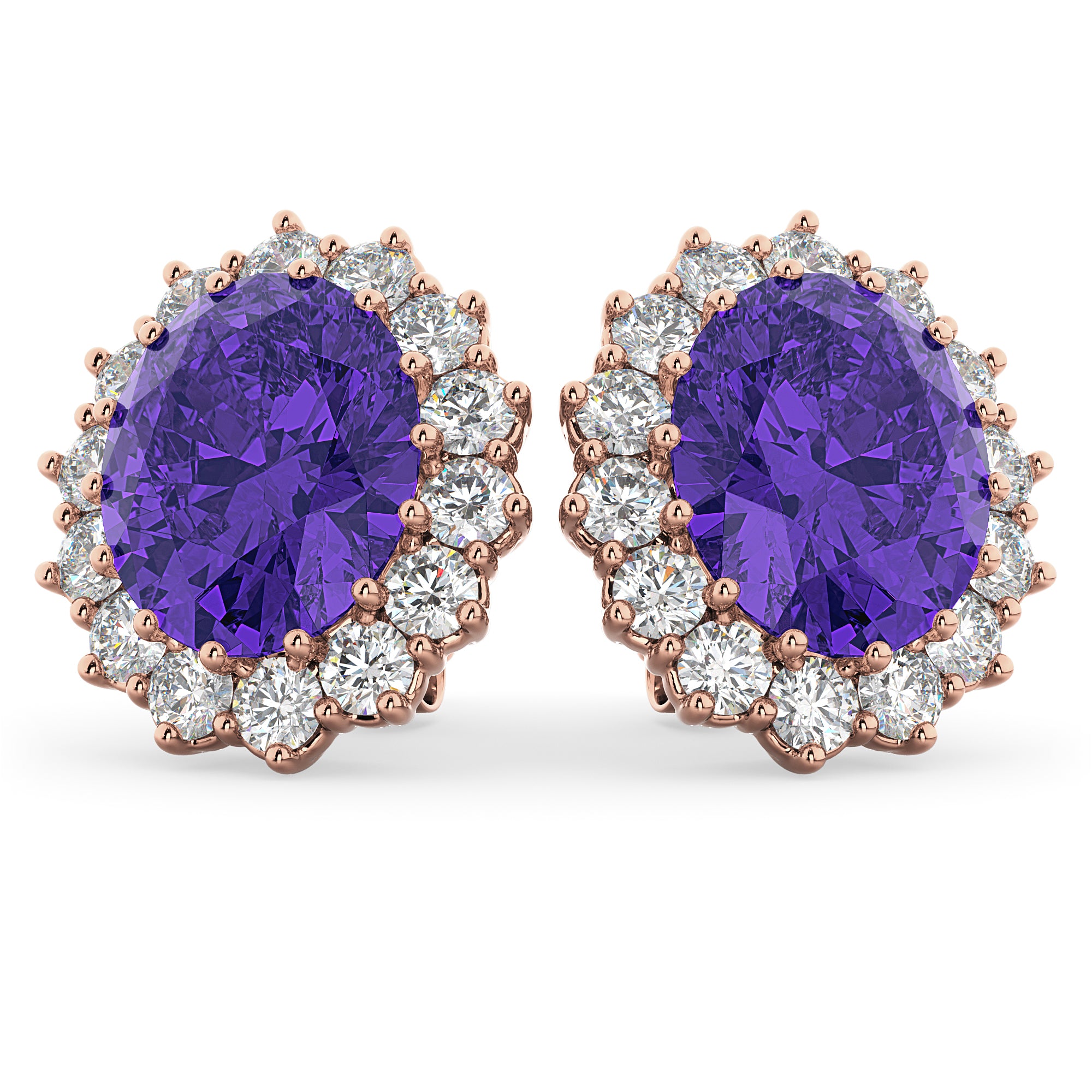 Oval Tanzanite & Diamond Accented Earrings 14k Rose Gold (10.80ctw)
