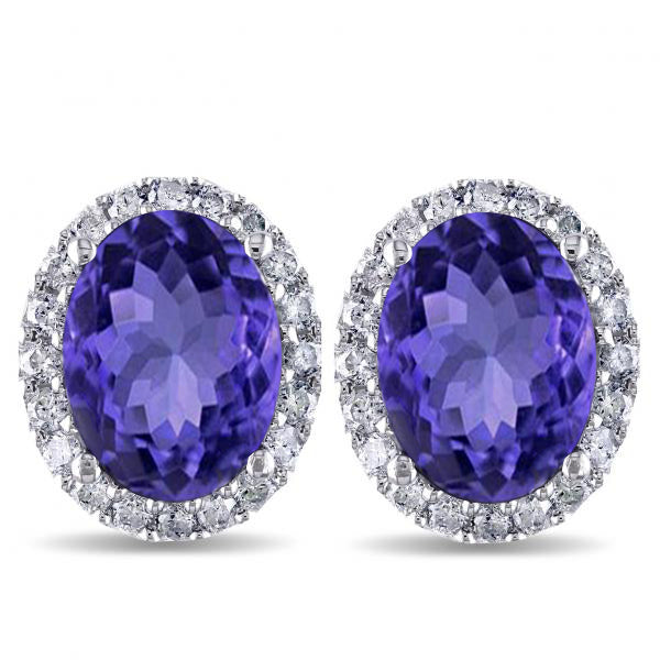 Oval Tanzanite & Halo Diamond Stud Earrings 14k White Gold 4.80ct