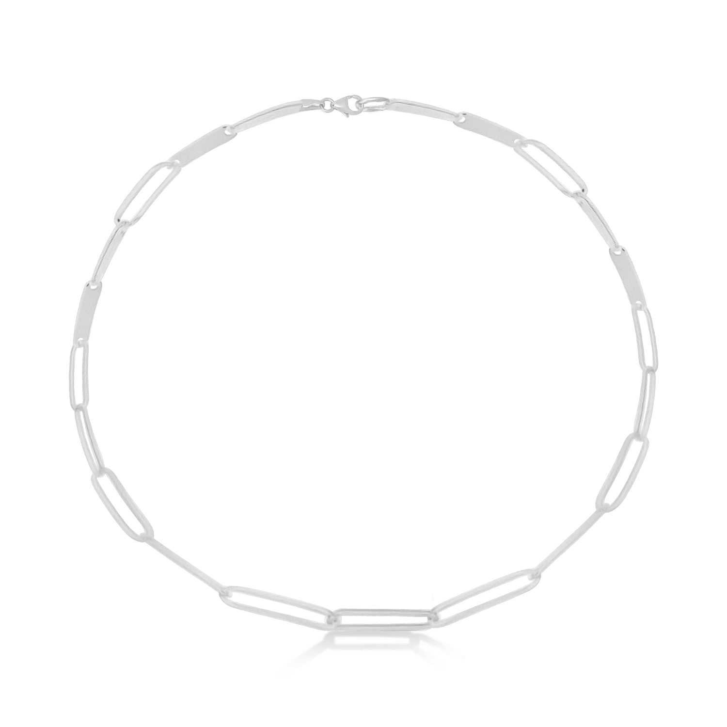 Sitting on a 14k white gold chain, this 7" open-chain paperclip bar bracelet is perfect for layering with your favorites ? or wear it solo as a delicate statement piece. Perfect for office style wearing.