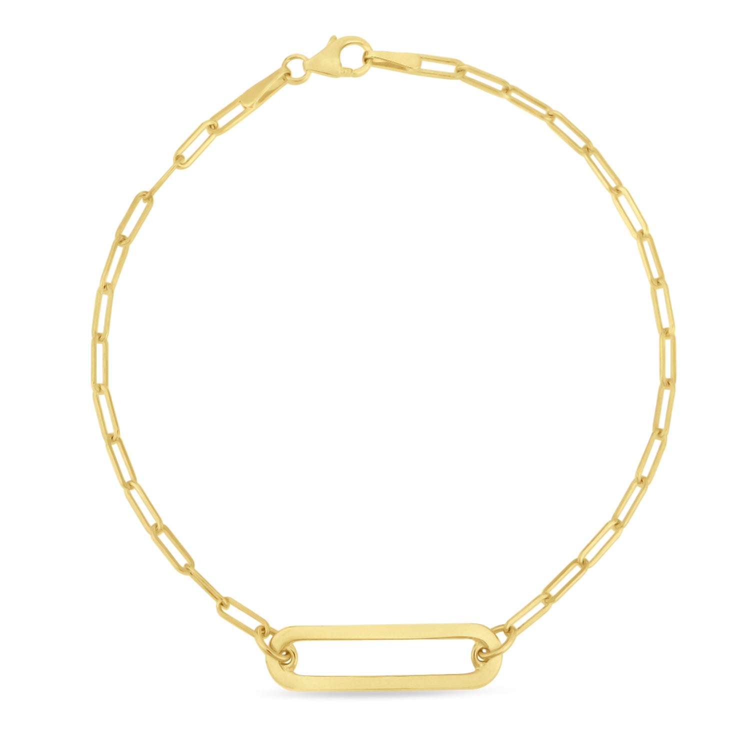 Paperclip Straight Open Bar Bracelet 14k Yellow Gold