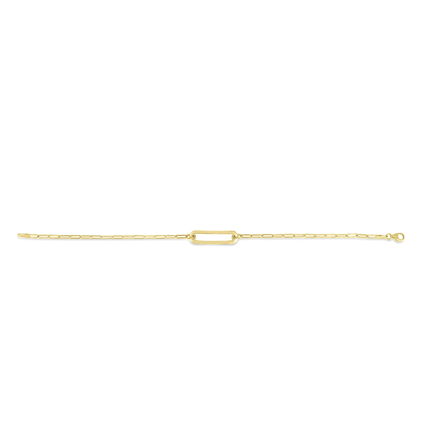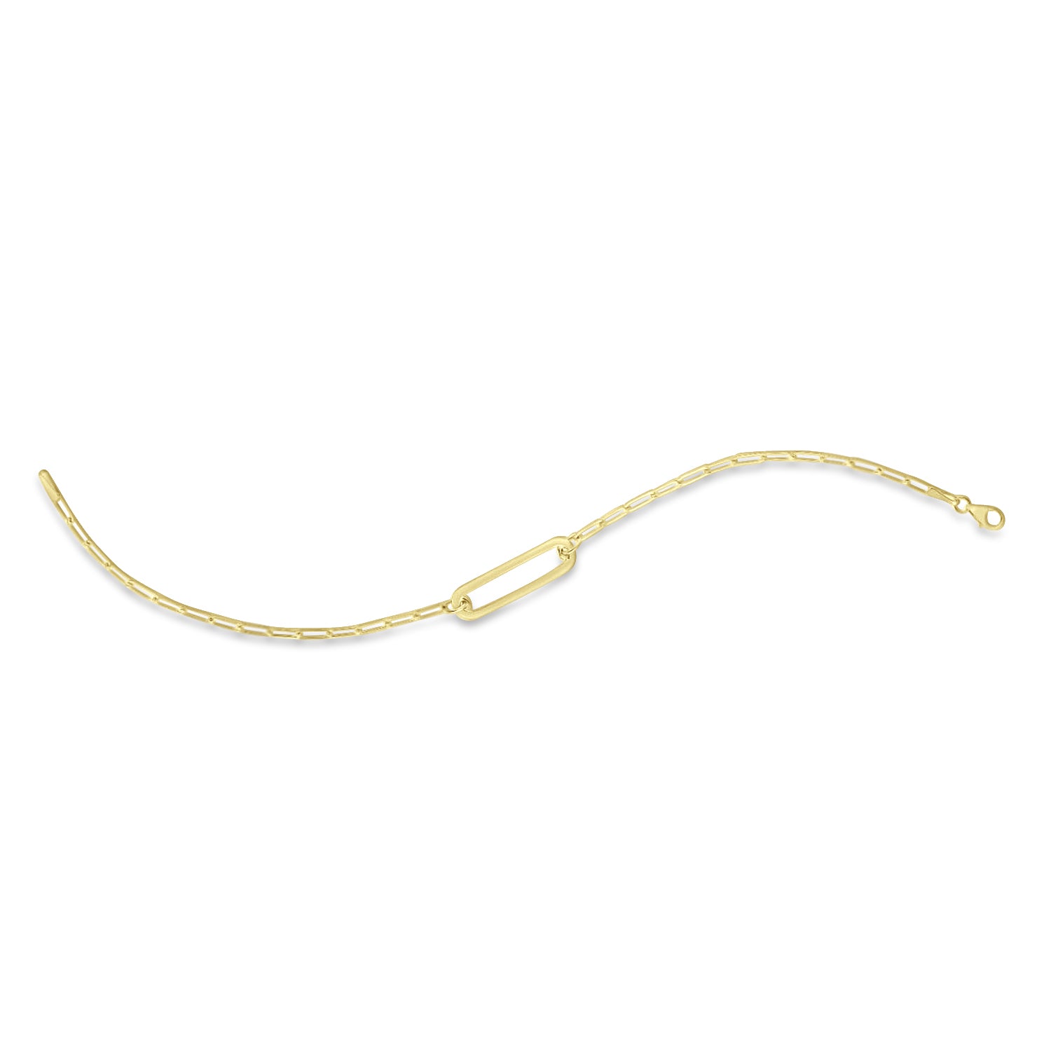 Sitting on a 14k yellow gold chain, this open bar paperclip bracelet is perfect for...