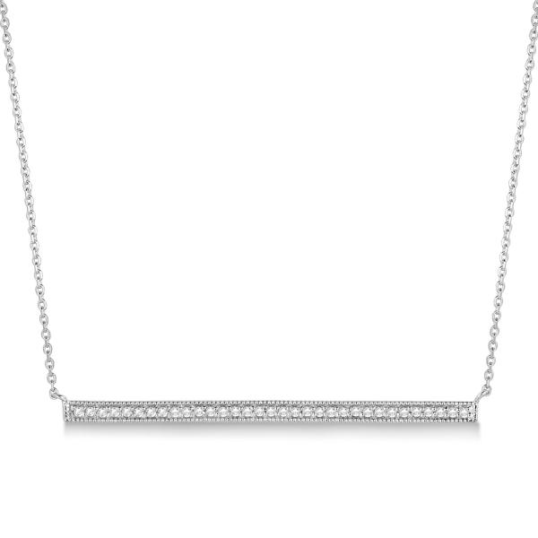 Pave Set Horizontal Diamond Bar Necklace 14k White Gold 0.33ct
