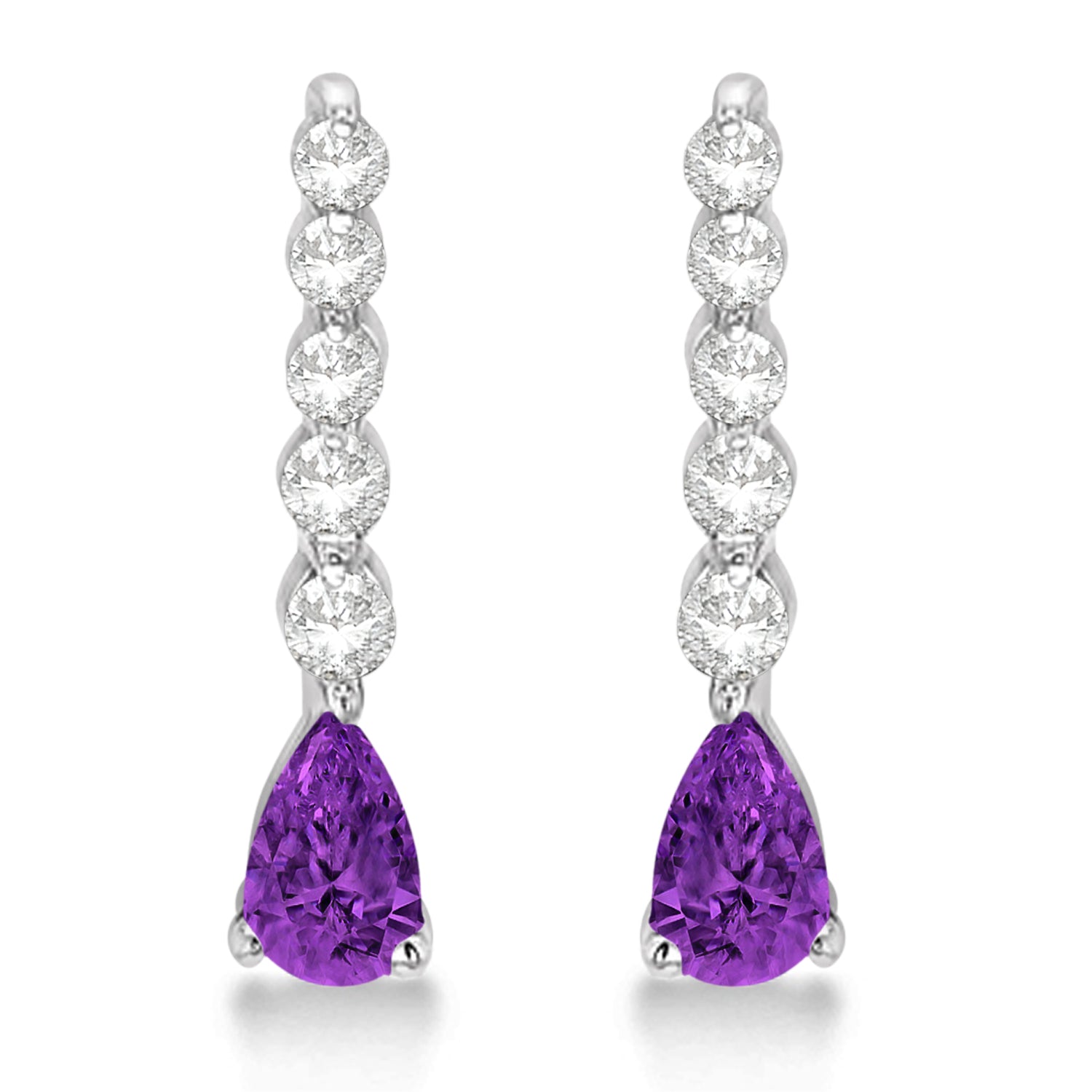 Pear Amethyst & Diamond Graduated Drop Earrings 14k White Gold (0.80ctw)