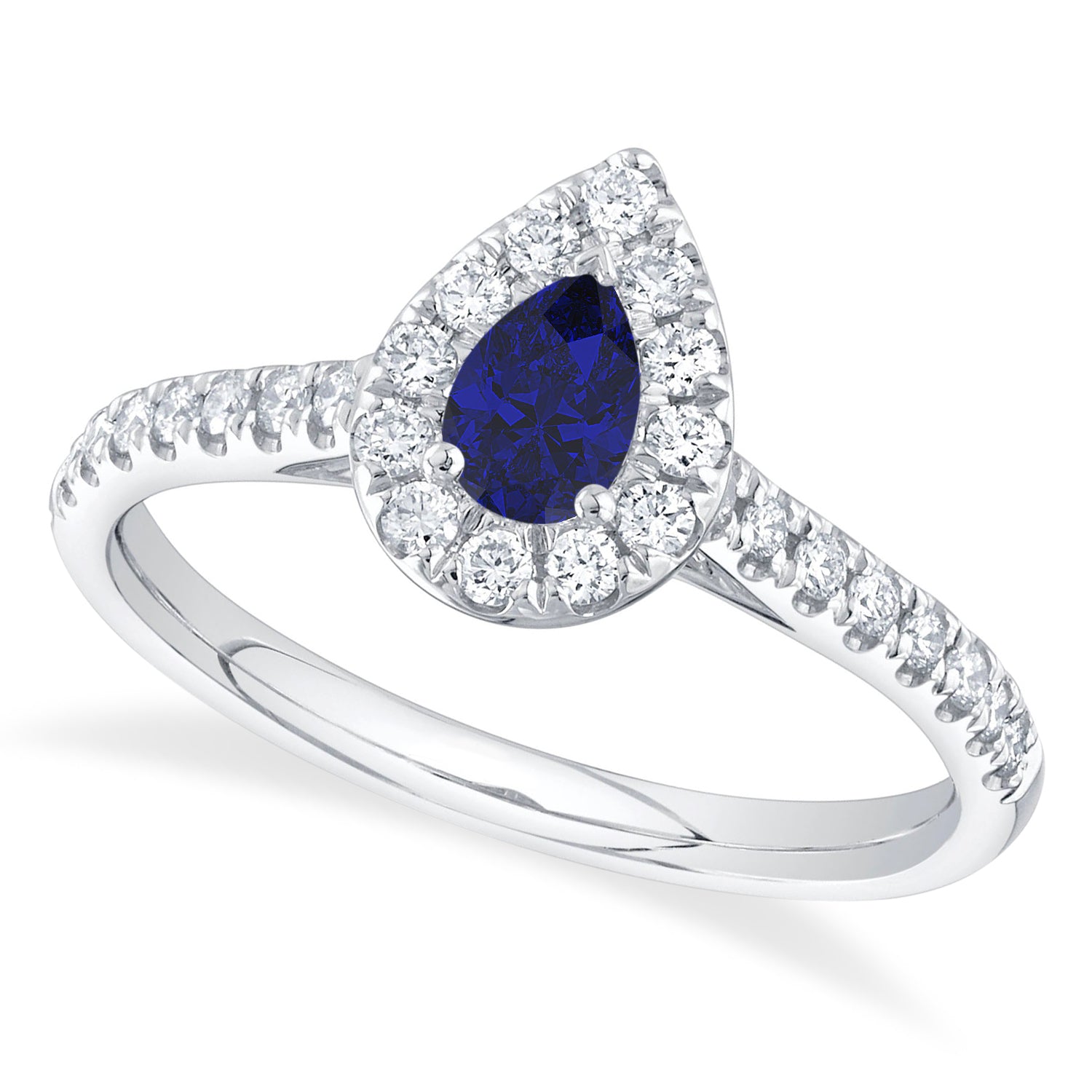Pear Cut Blue Sapphire & Diamond Engagement Ring 14K White Gold (0.62ct)