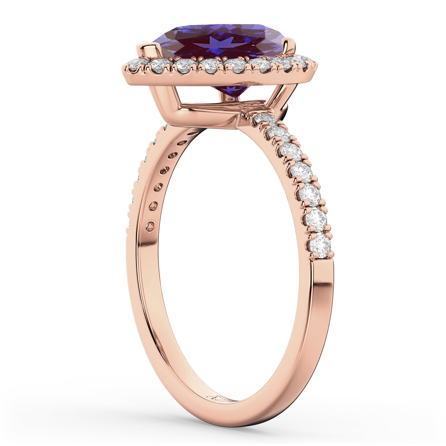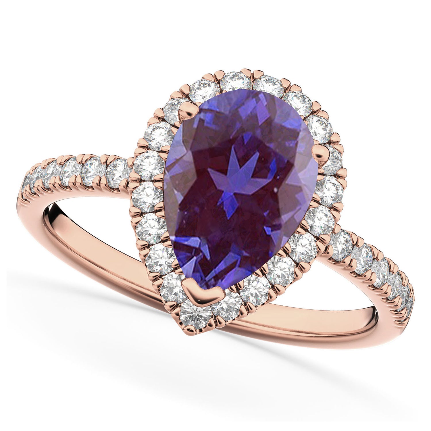 Pear Cut Halo Lab Alexandrite & Diamond Engagement Ring 14K Rose Gold 2.21ct