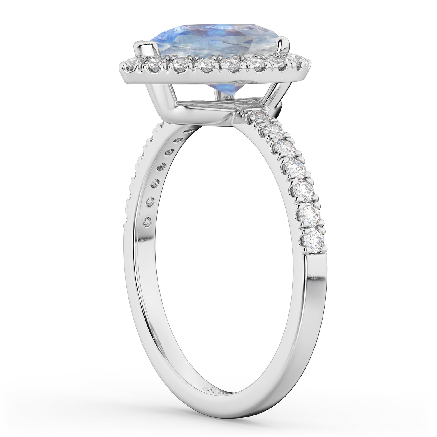 Pear Cut Halo Moonstone & Diamond Engagement Ring 14K White Gold 2.51ct