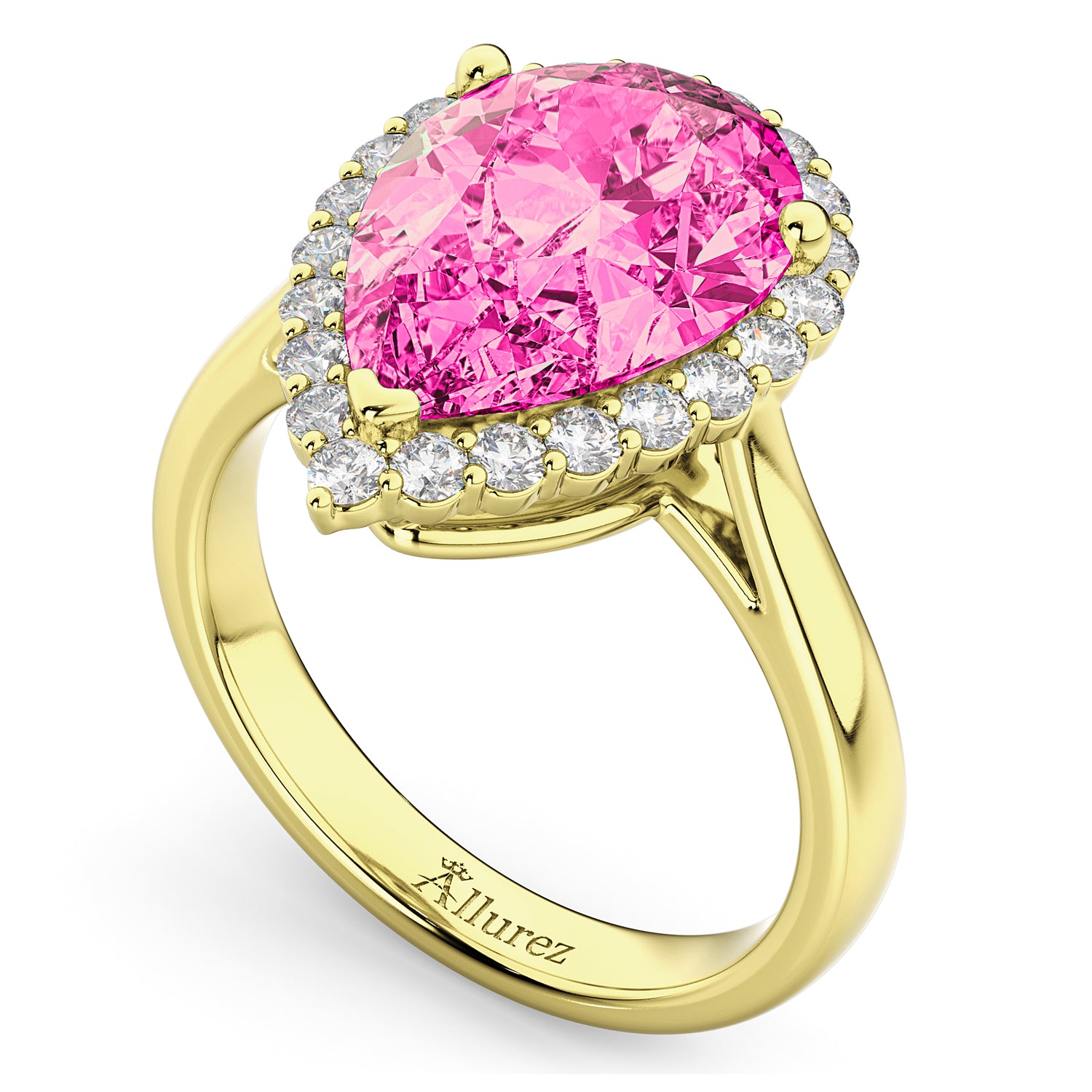 Pear Cut Halo Pink Tourmaline & Diamond Engagement Ring 14K Yellow Gold 7.19ct