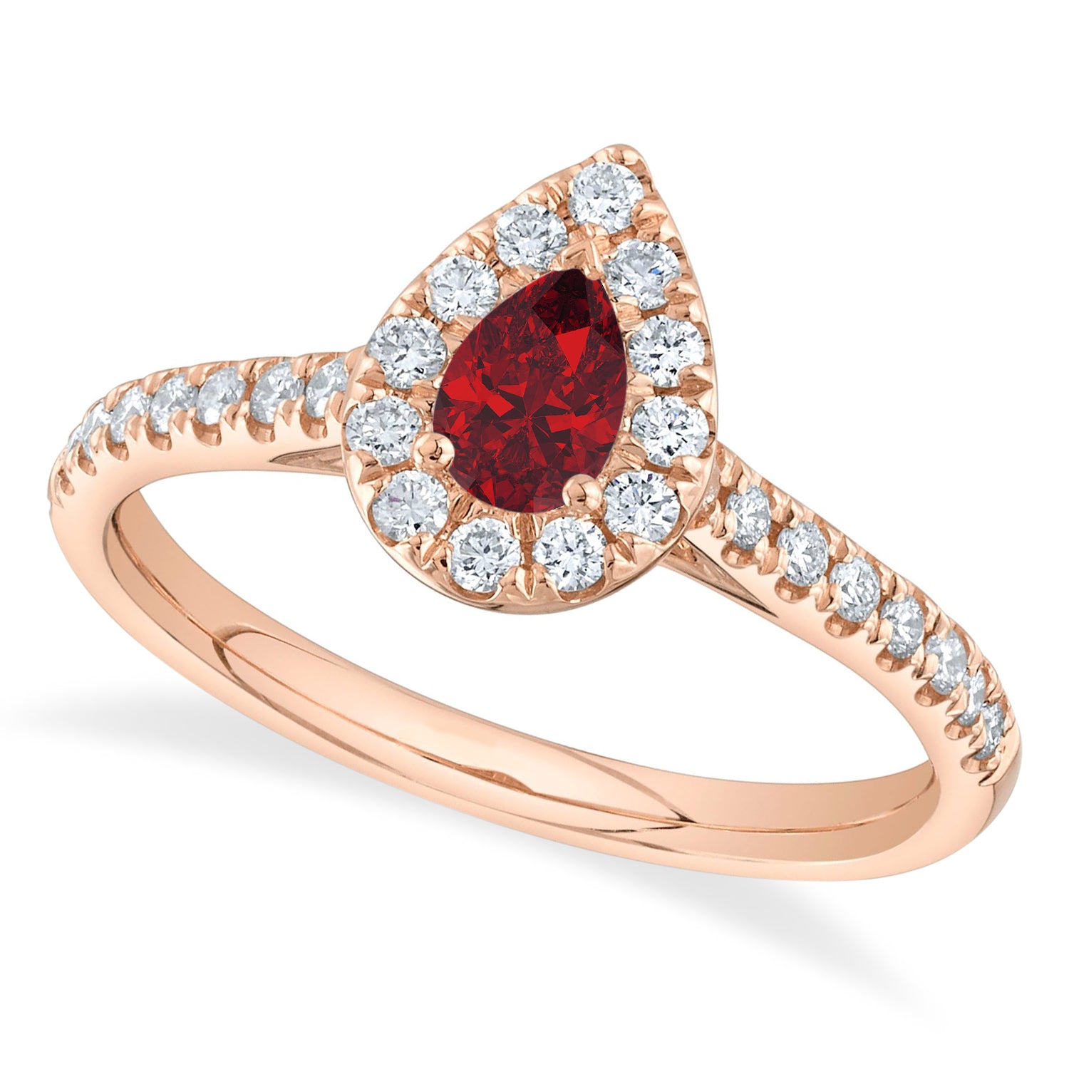 Pear Cut Ruby & Diamond Engagement Ring 14K Rose Gold (0.59ct)