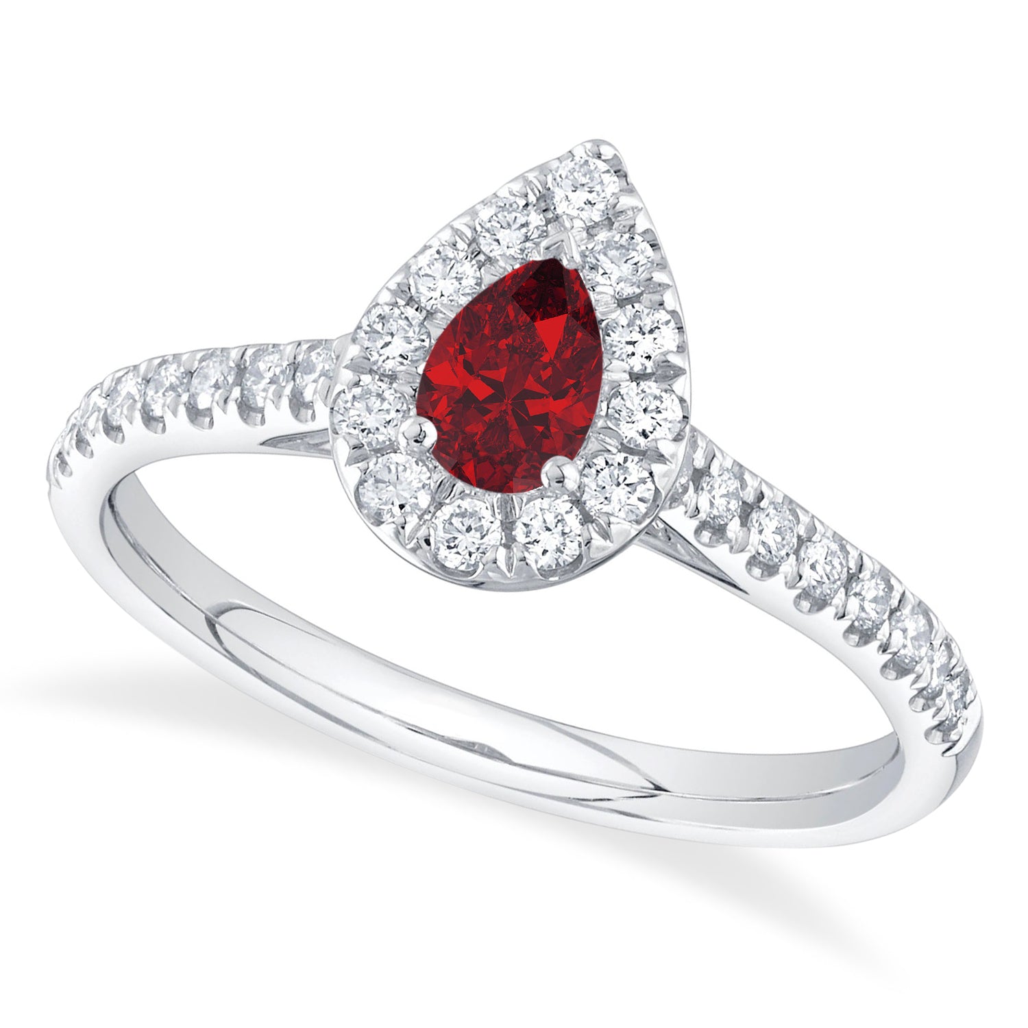 Elevate your love story with our captivating Pear Cut Ruby Solitaire & Diamond Engagement Ring...