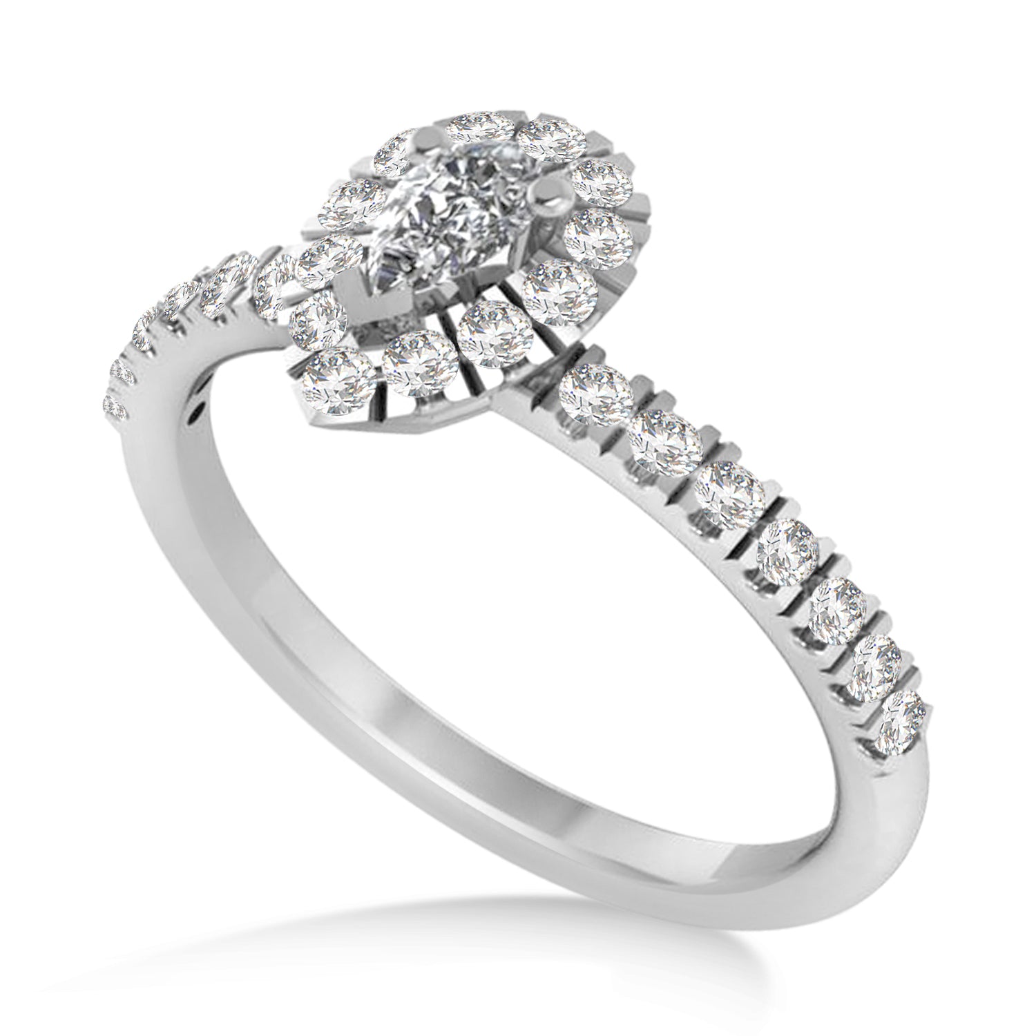 Pear Diamond Halo Engagement Ring 14k White Gold (0.63ct)
