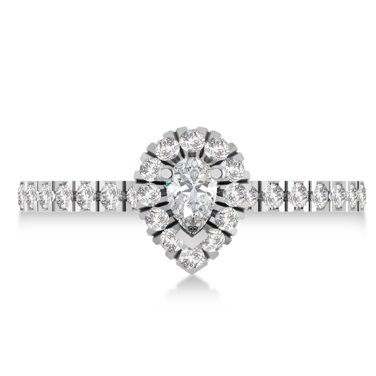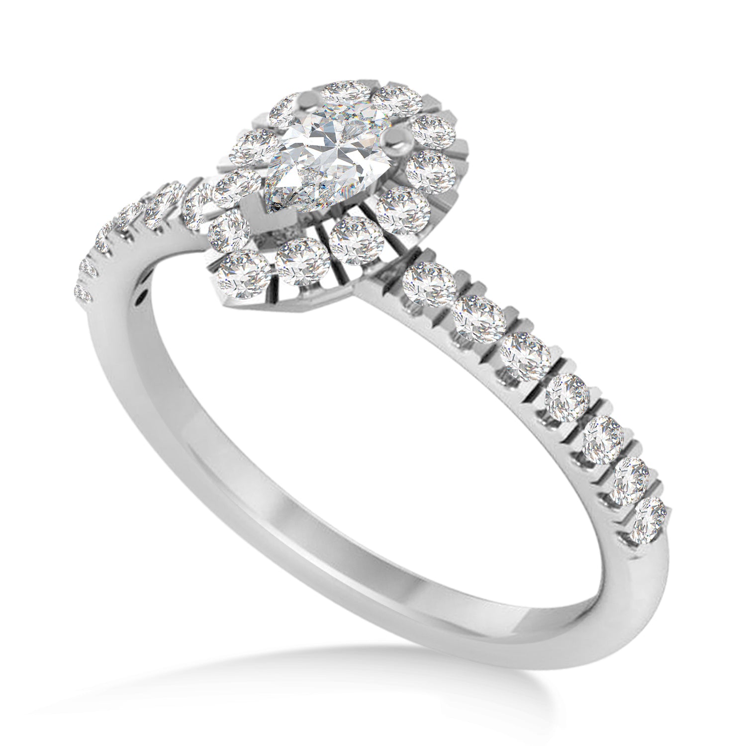 Pear Moissanite & Diamond Halo Engagement Ring 14k White Gold (0.63ct)