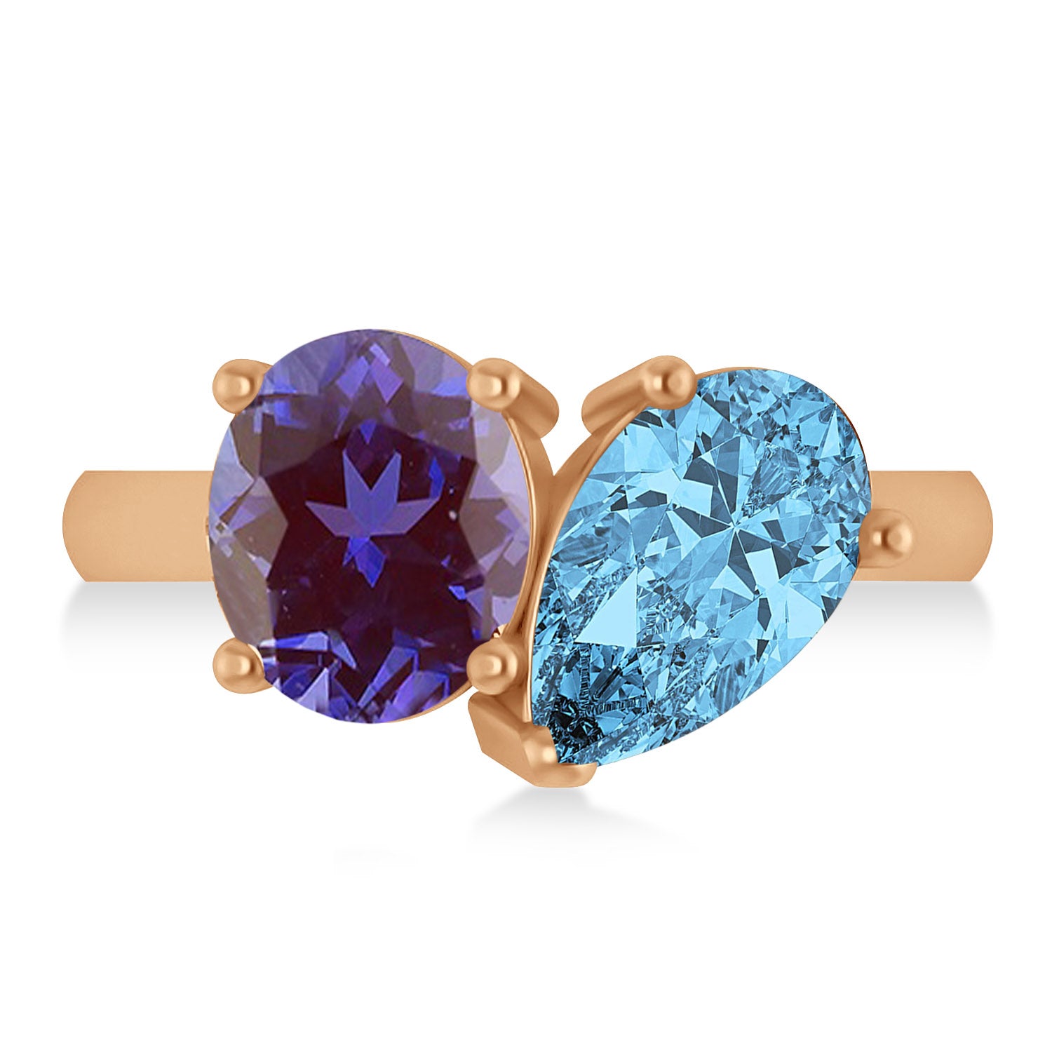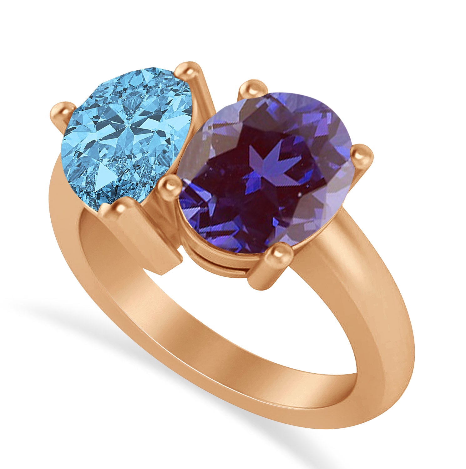 Pear/Oval Lab Alexandrite & Blue Topaz Toi et Moi Ring 18k Rose Gold (