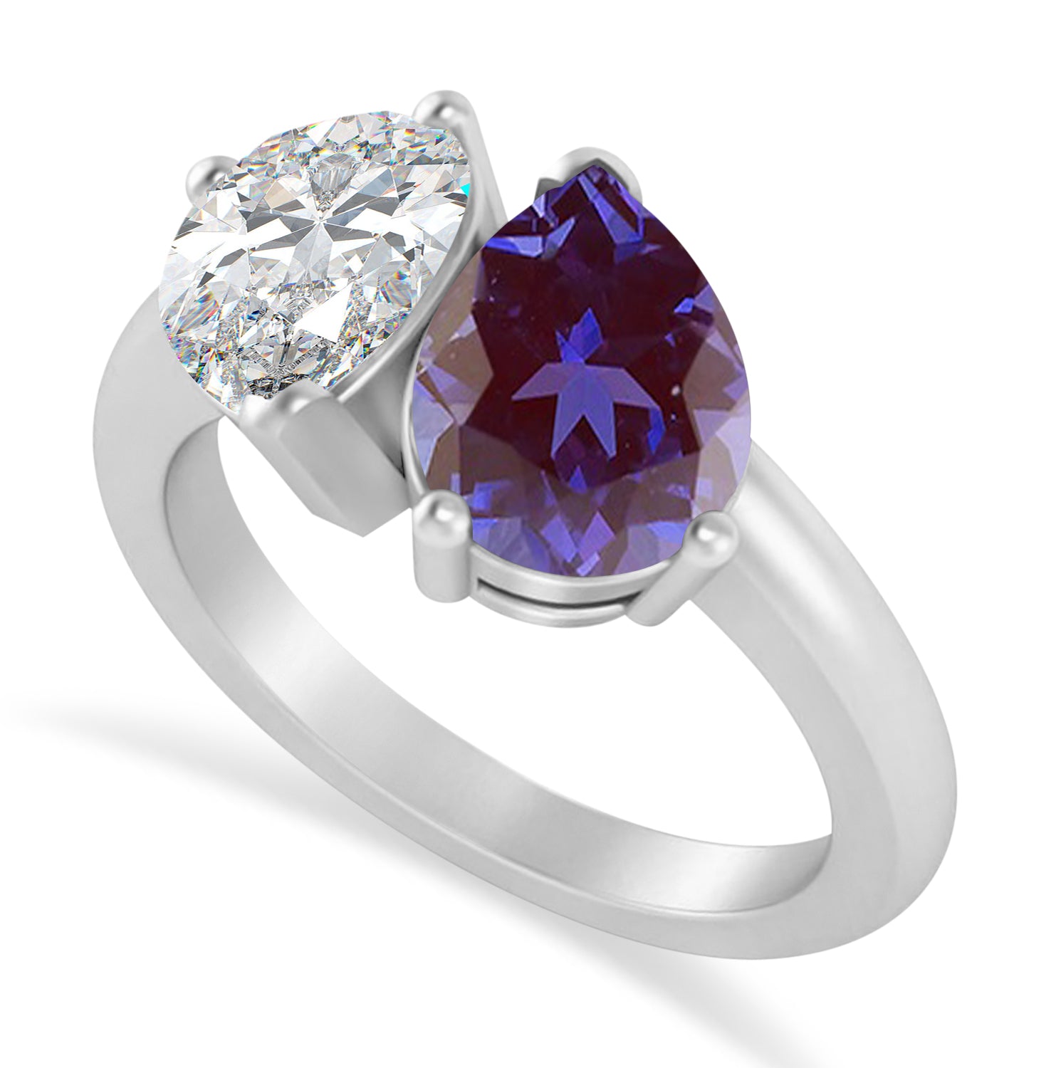Pear/Pear Diamond & Lab Alexandrite Toi et Moi Ring 18k White Gold (4.
