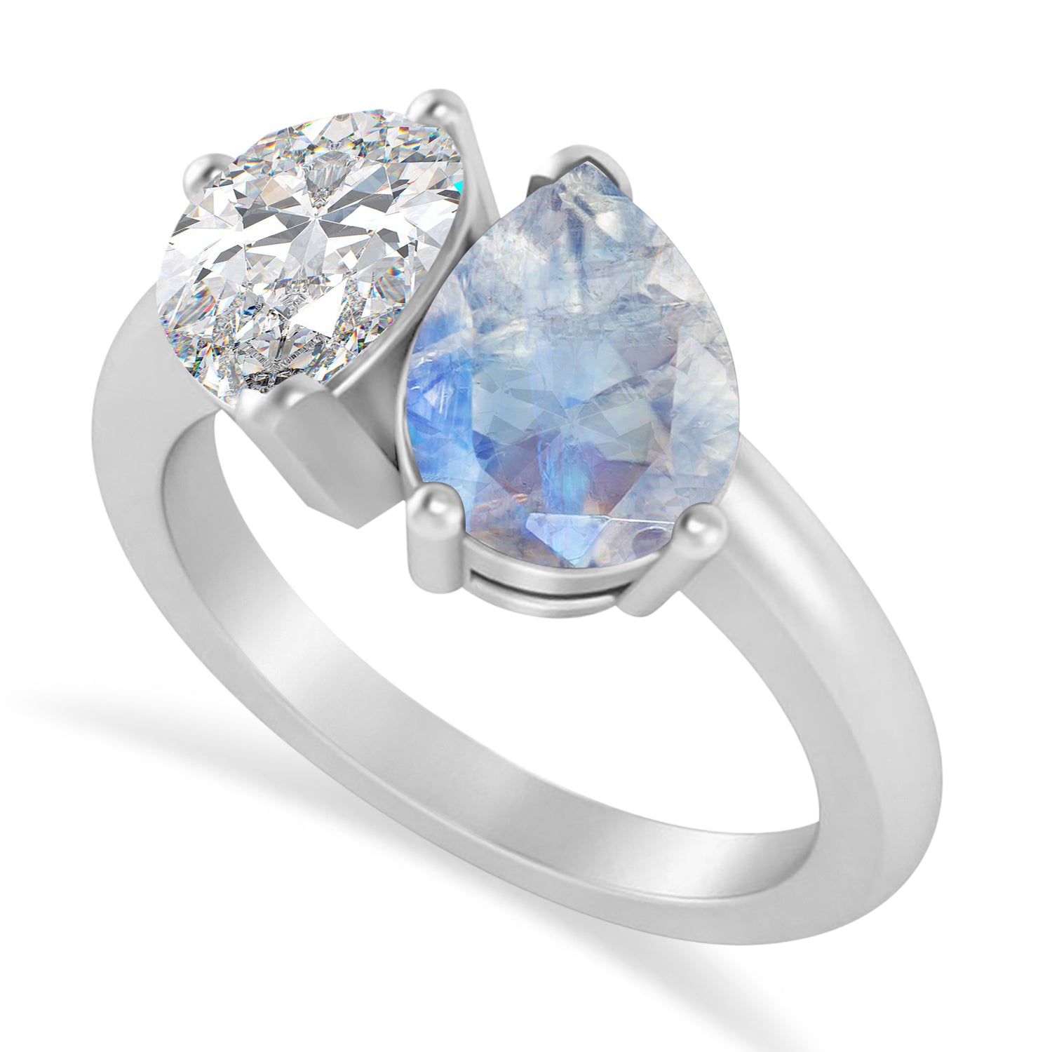 Pear/Pear Diamond & Moonstone Toi et Moi Ring 18k White Gold (4.00ct)
