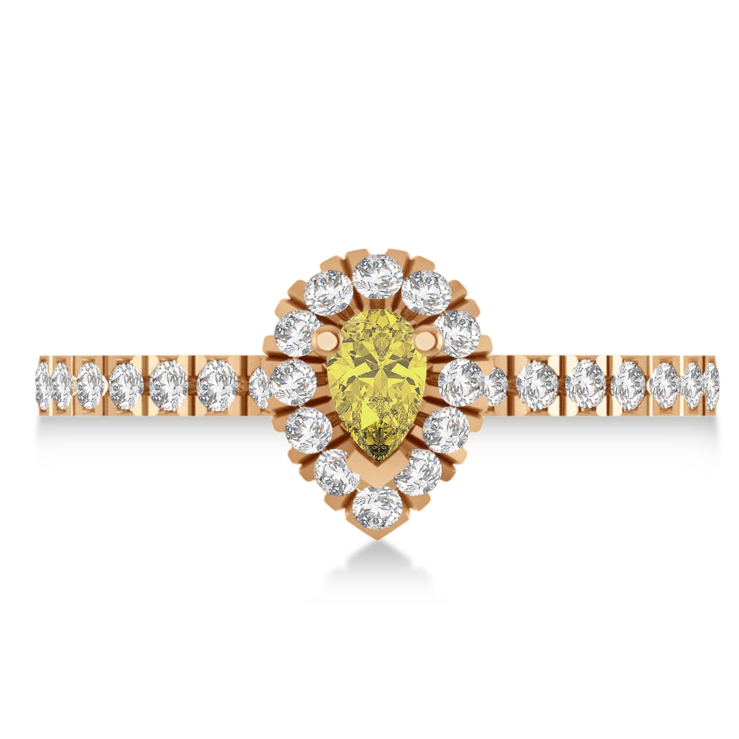 Pear Yellow & White Diamond Halo Engagement Ring 14k Rose Gold (0.63ct)
