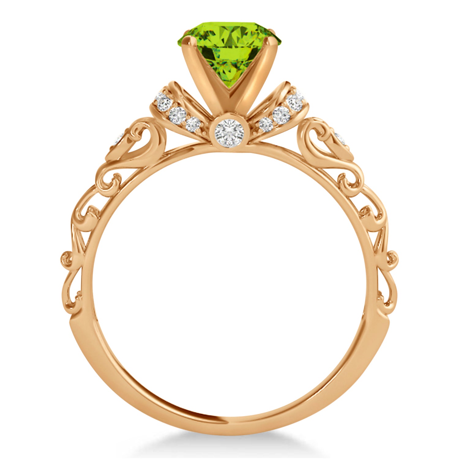 Peridot & Diamond Antique Style Bridal Set 14k Rose Gold (1.62ct)