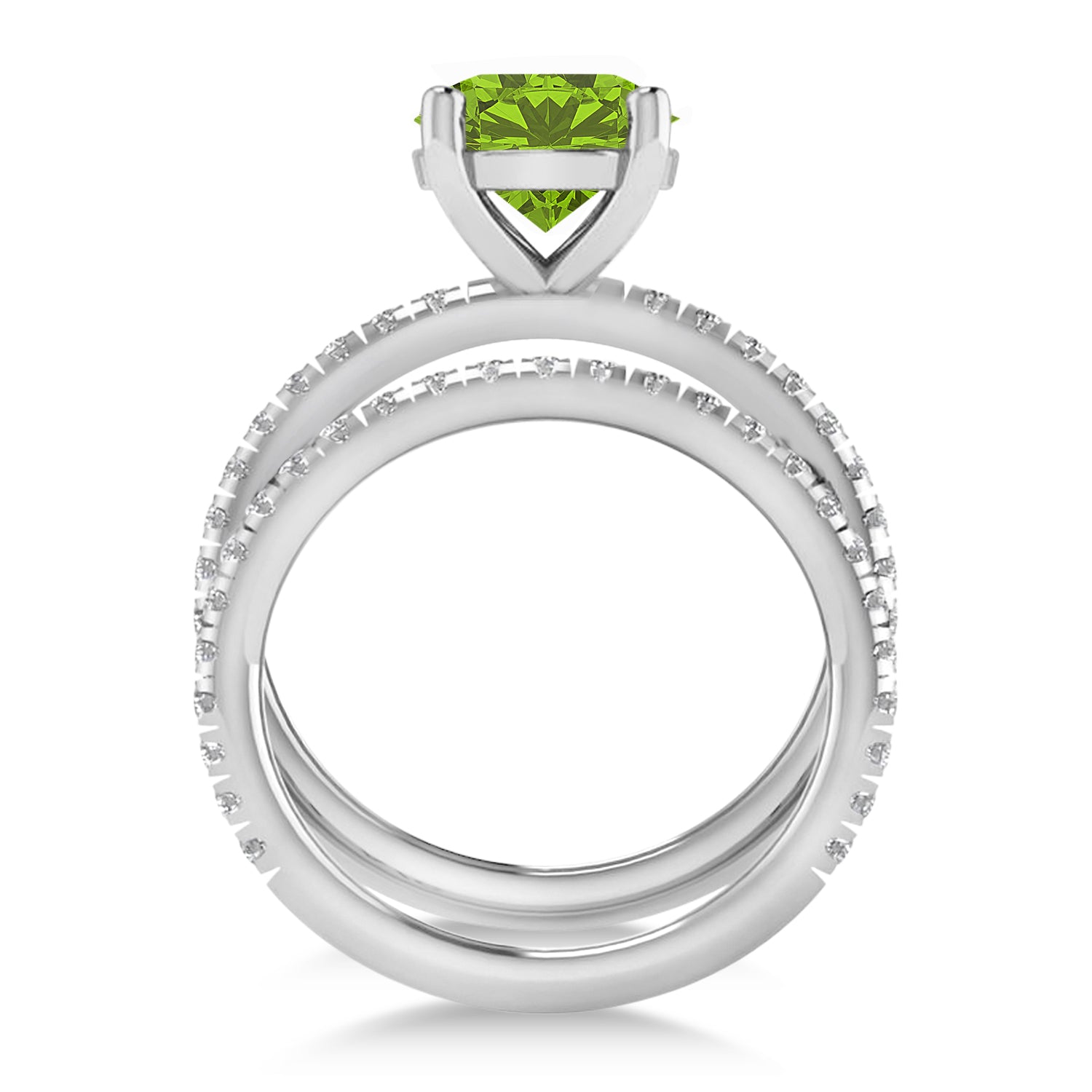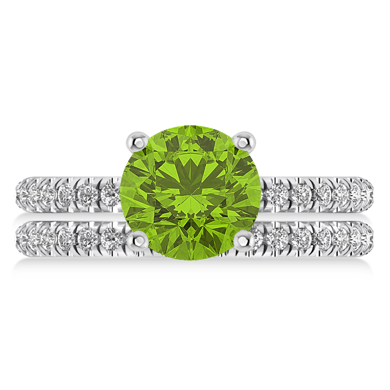 Peridot & Diamond Round-Set Semi-Eternity Bridal Set 14k White Gold (2