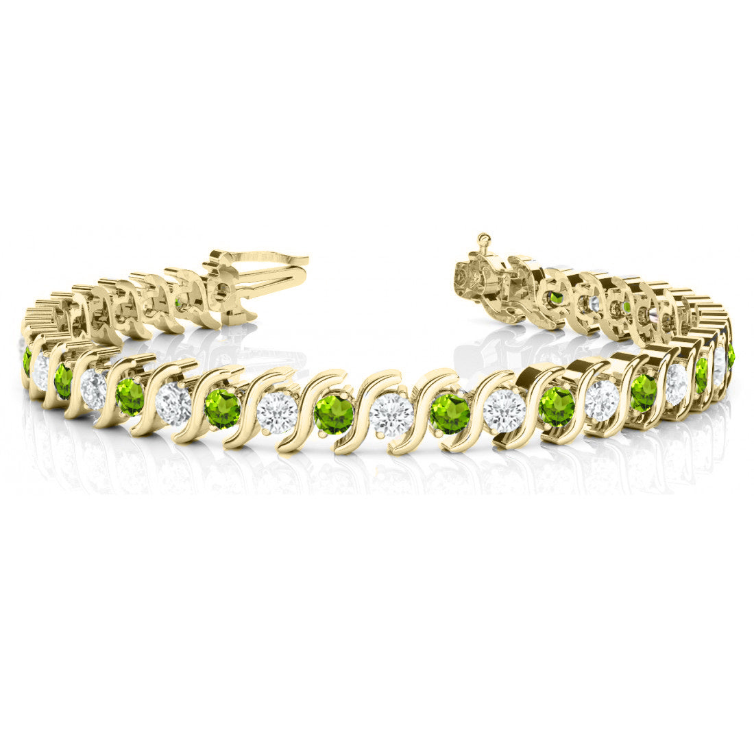 Peridot & Diamond Tennis S Link Bracelet 14k Yellow Gold (4.00ct)