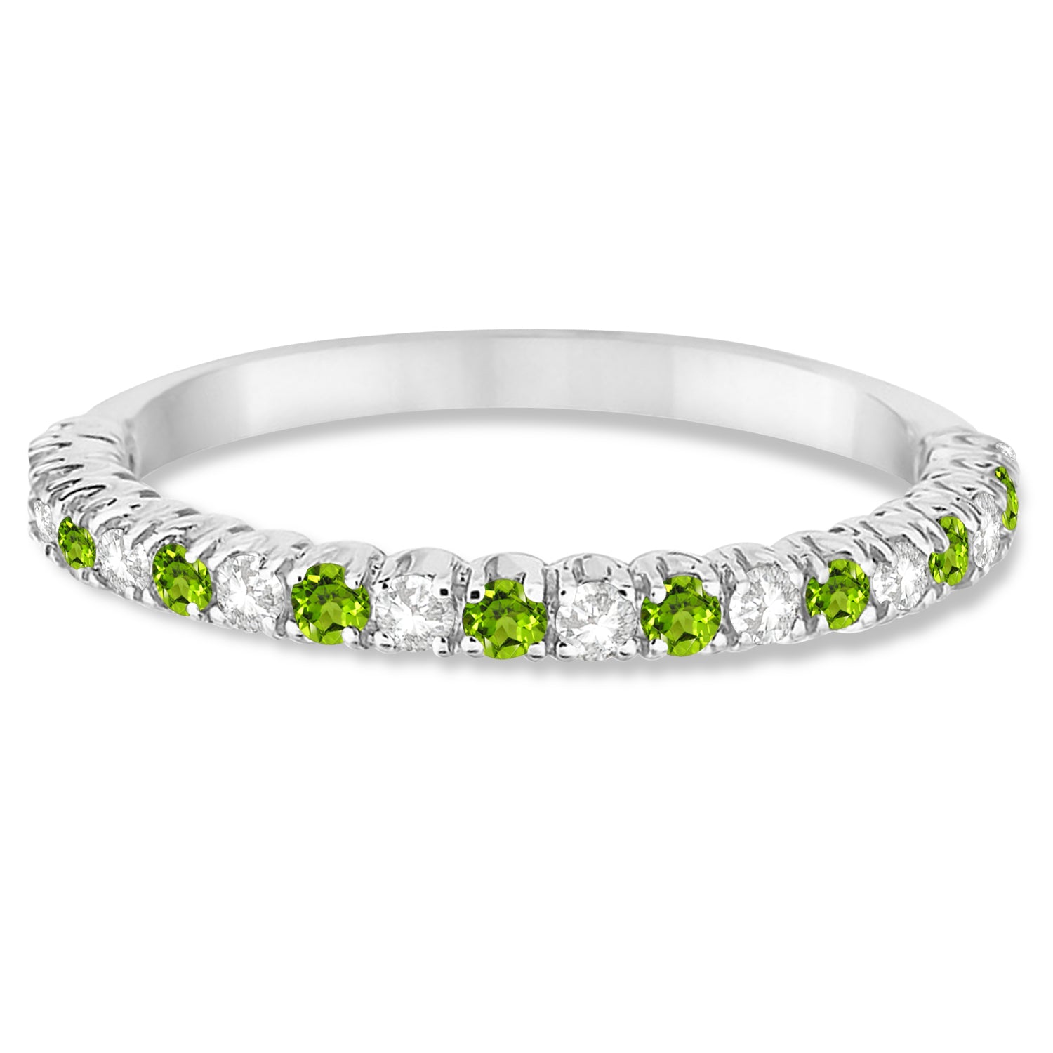 Peridot & Diamond Wedding Band Anniversary Ring in 14k White Gold (0.50ct)