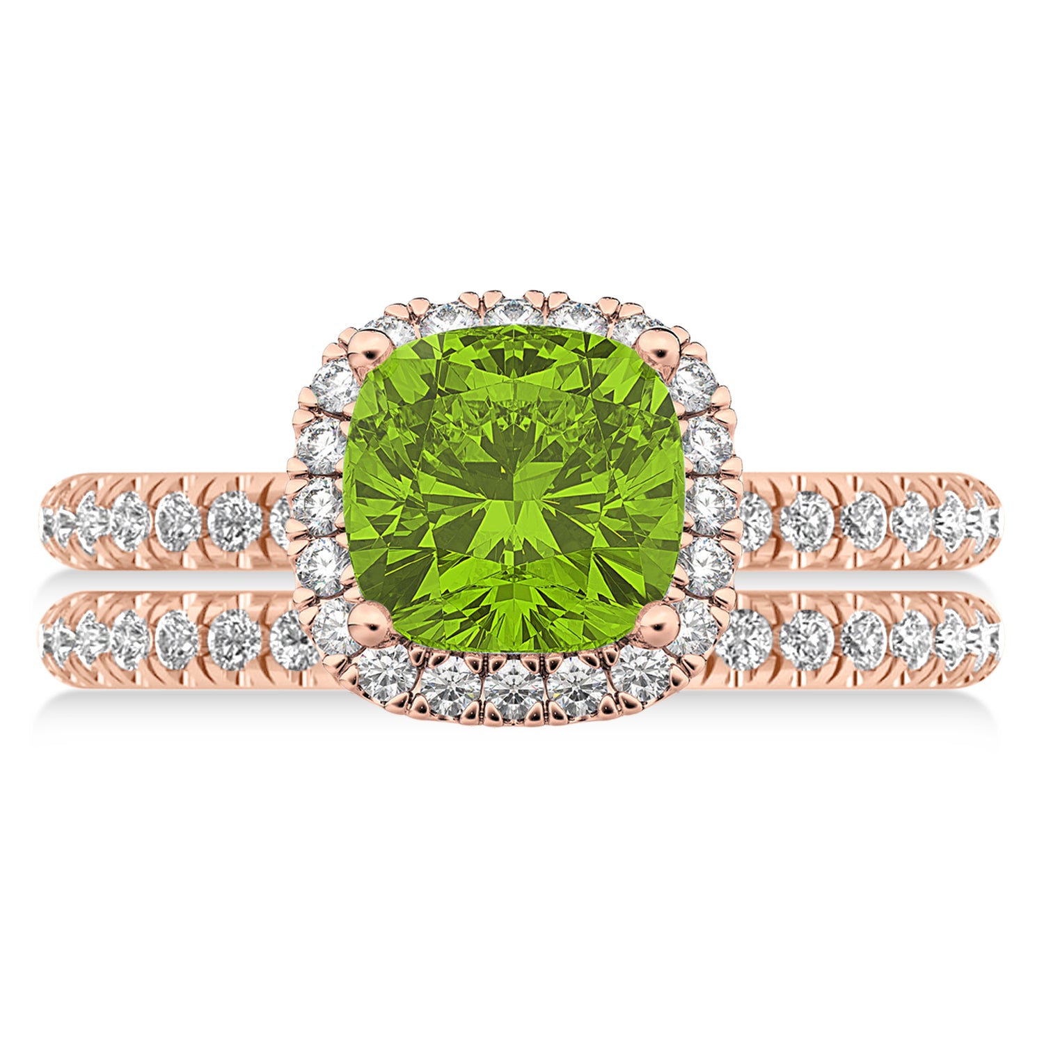 Peridot & Diamonds Cushion-Cut Halo Bridal Set 14K Rose Gold (3.38ct)