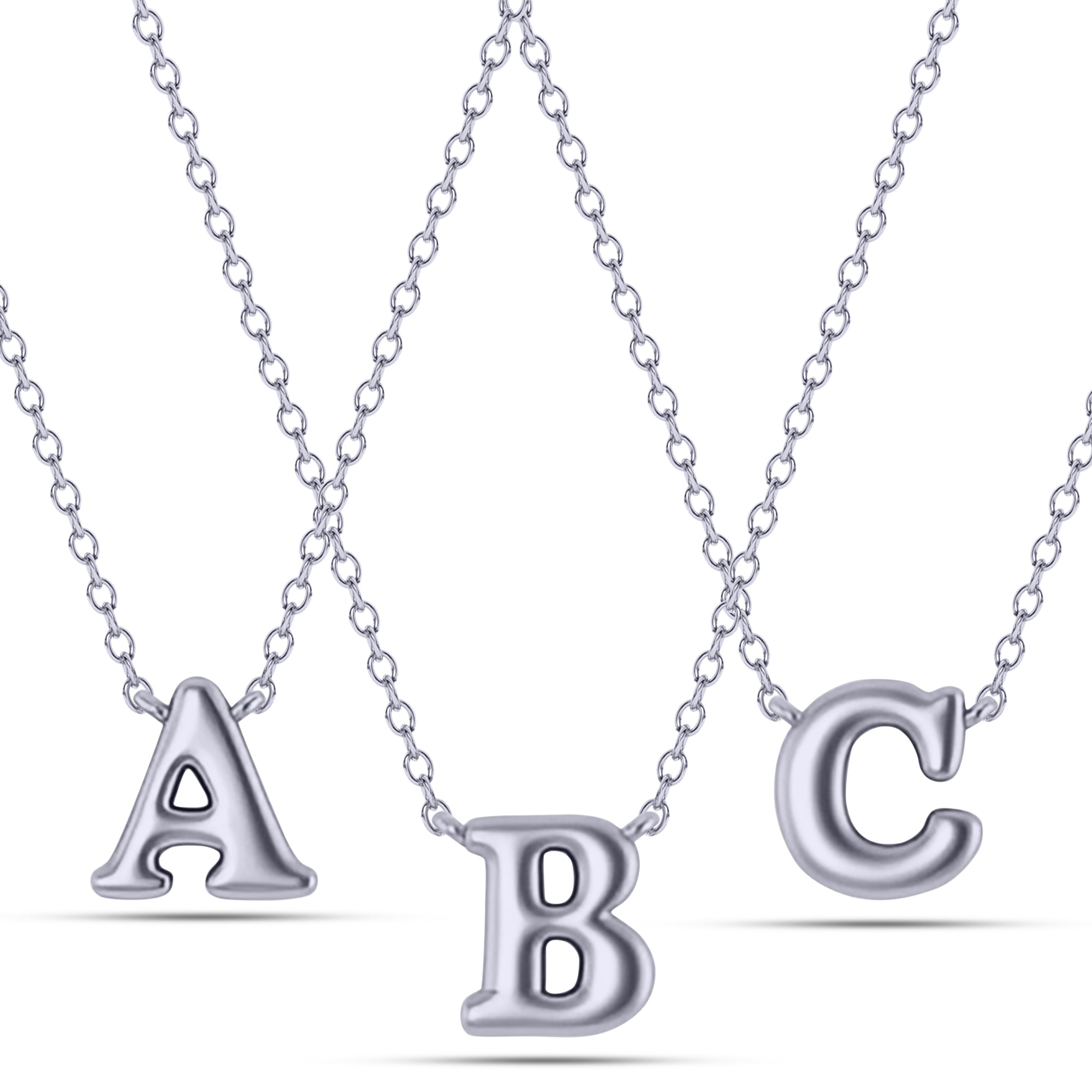 Personalized Bubble Initial Letter Charm Pendant Necklace 14K White Gold