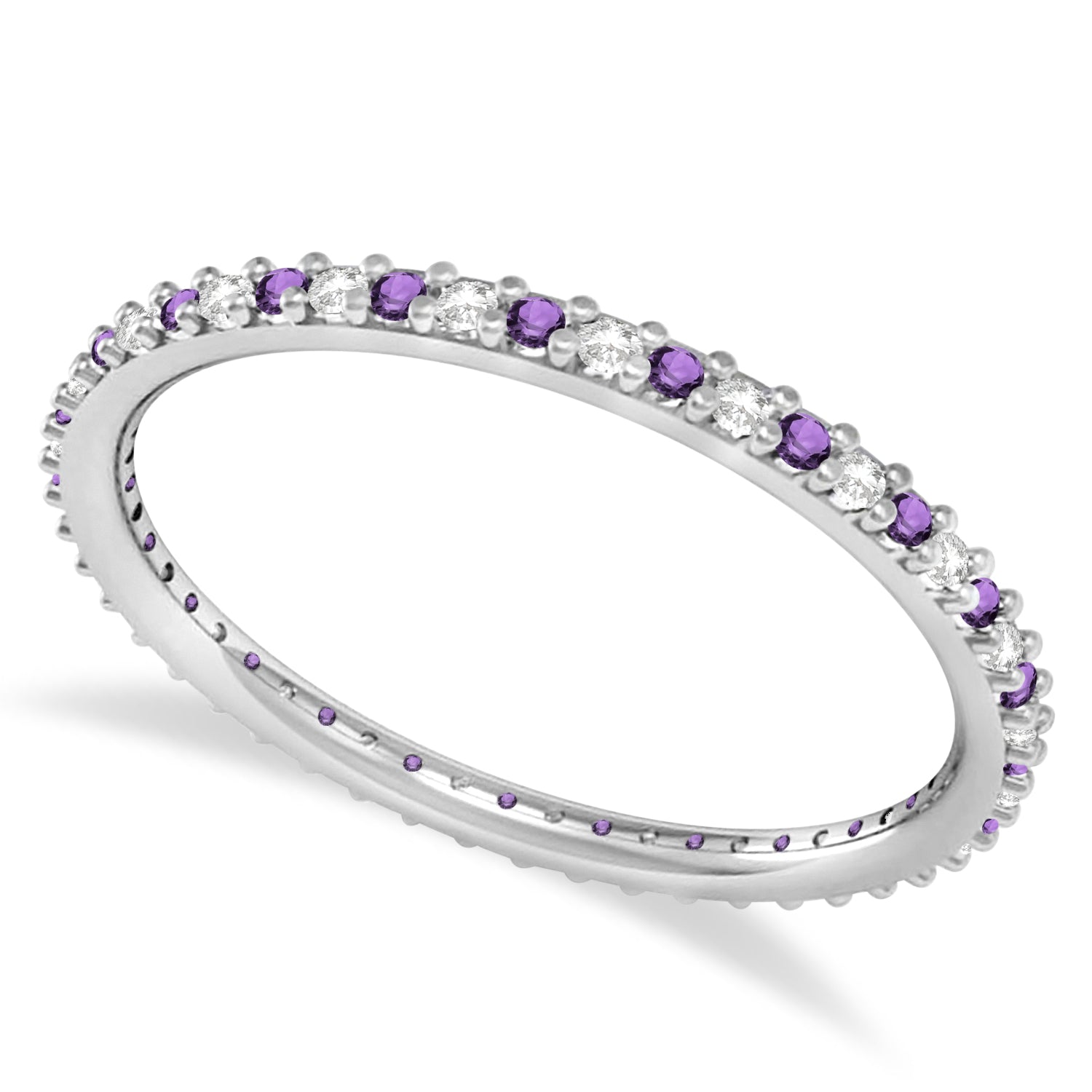 Petite Diamond & Amethyst Eternity Wedding Band 14k White Gold (0.25ct)