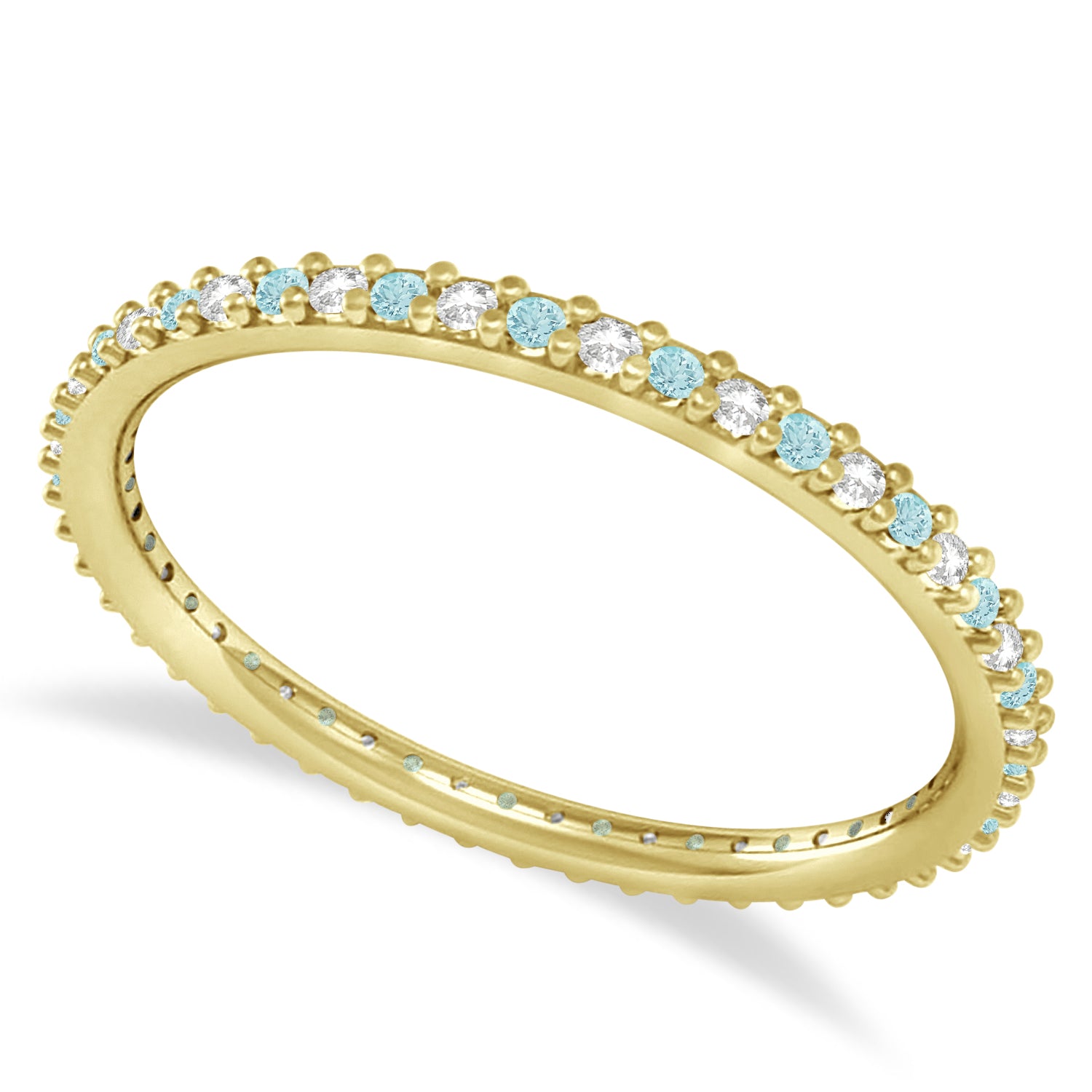 Petite Diamond & Aquamarine Eternity Wedding Band 14k Yellow Gold (0.25ct)