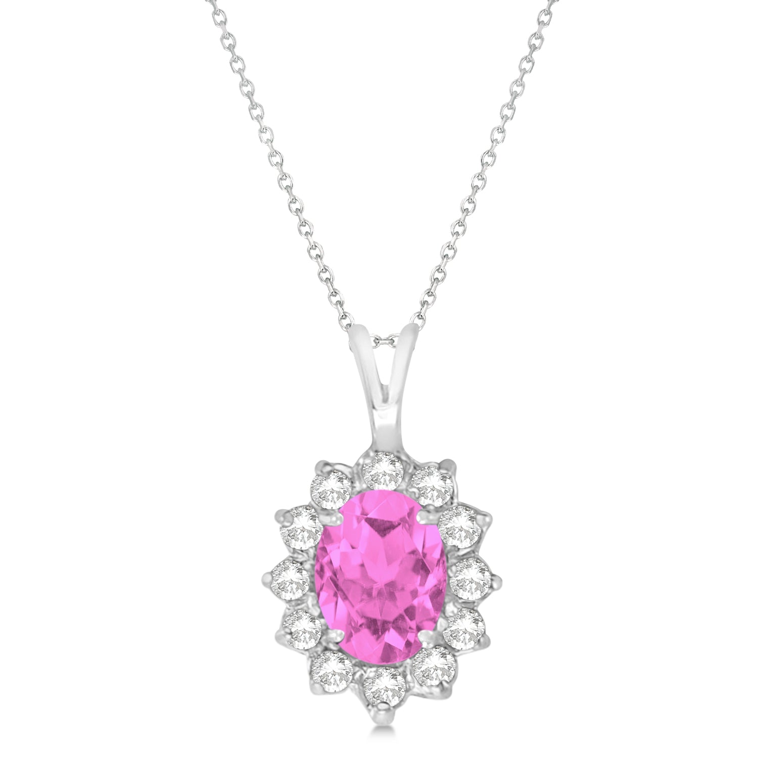 Inspired by the ring worn by Lady Diana and Princess Kate Middleton, this pink sapphire and diamond accented pendant necklace is truly stunning.
