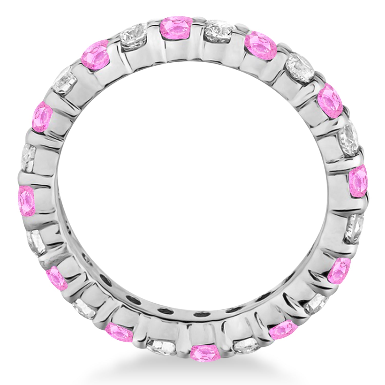 Pink Sapphire & Diamond Eternity Ring Band 14k White Gold (1.07ct) SIZ
