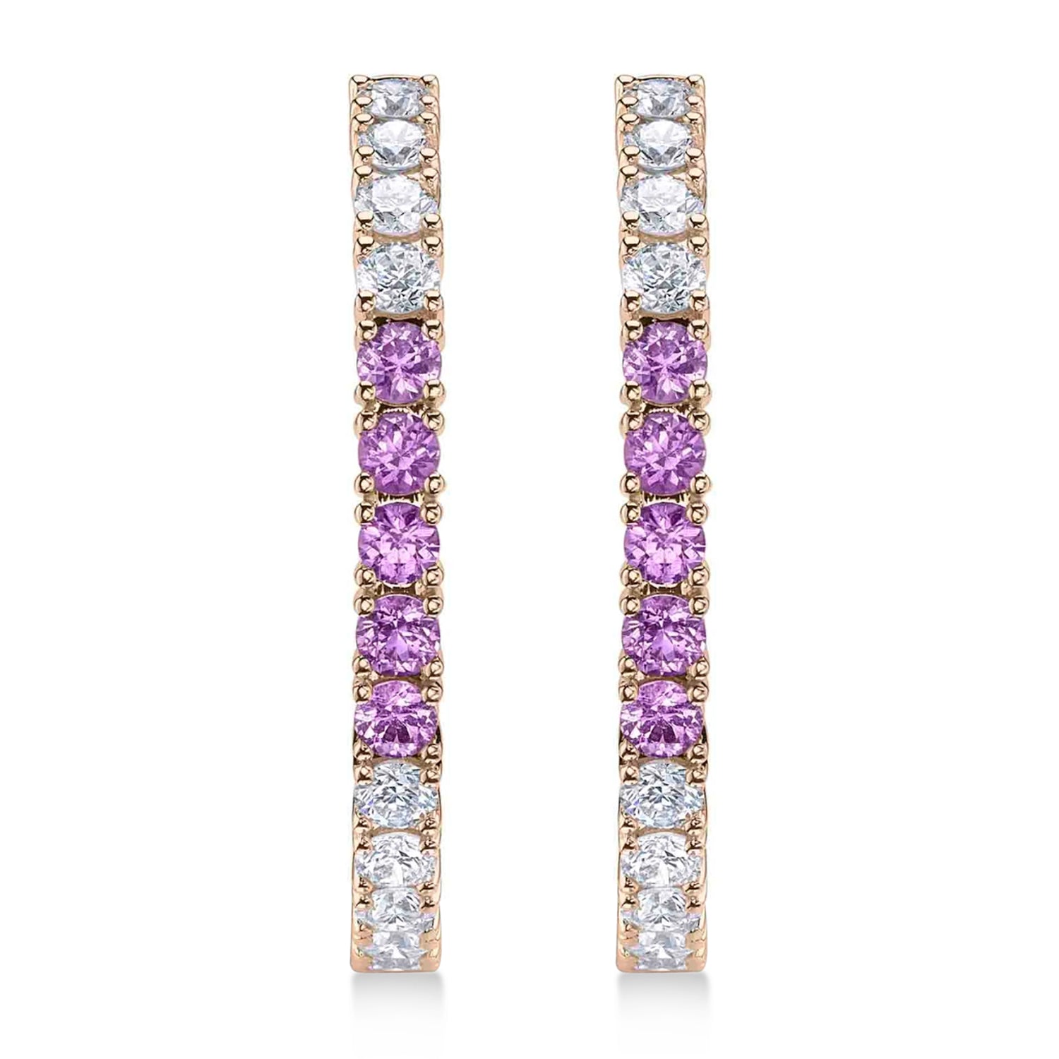 Pink Sapphire & Diamond Hoop Earrings 14K Rose Gold (1.54ct)