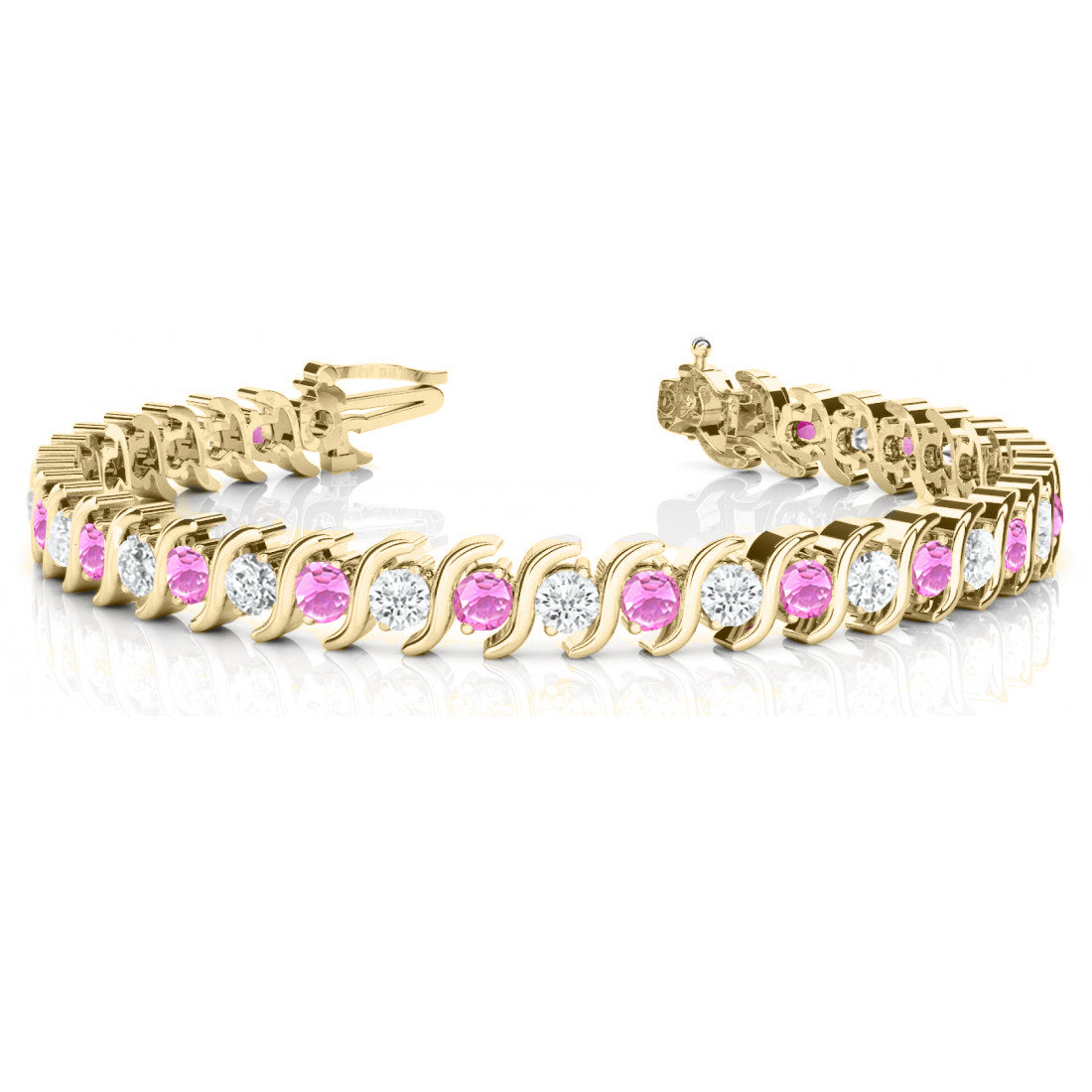 Pink Sapphire & Diamond Tennis S Link Bracelet 14k Yellow Gold (4.00ct)