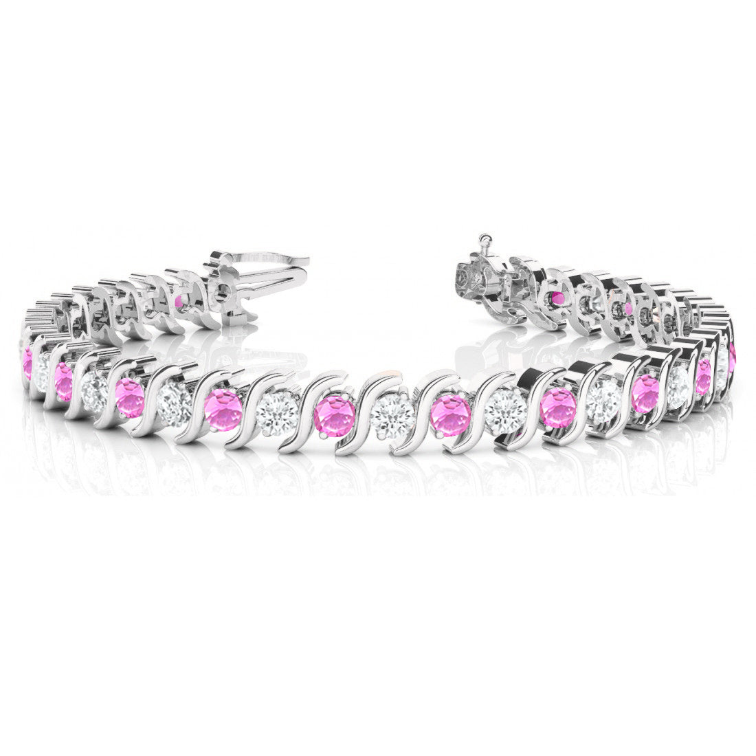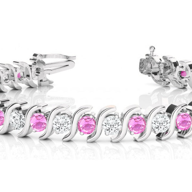 Pink Sapphire & Diamond Tennis S Link Bracelet 18k White Gold (6.00ct)