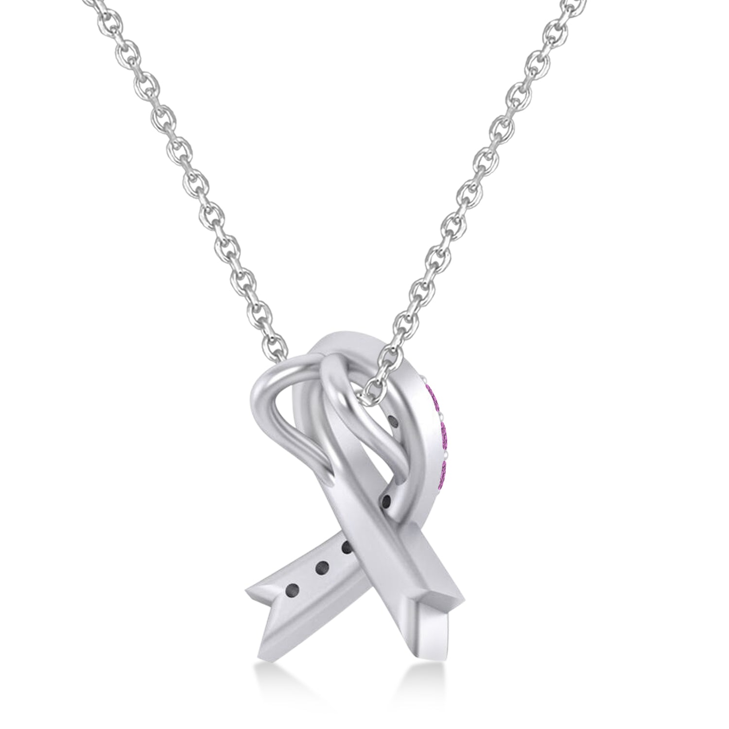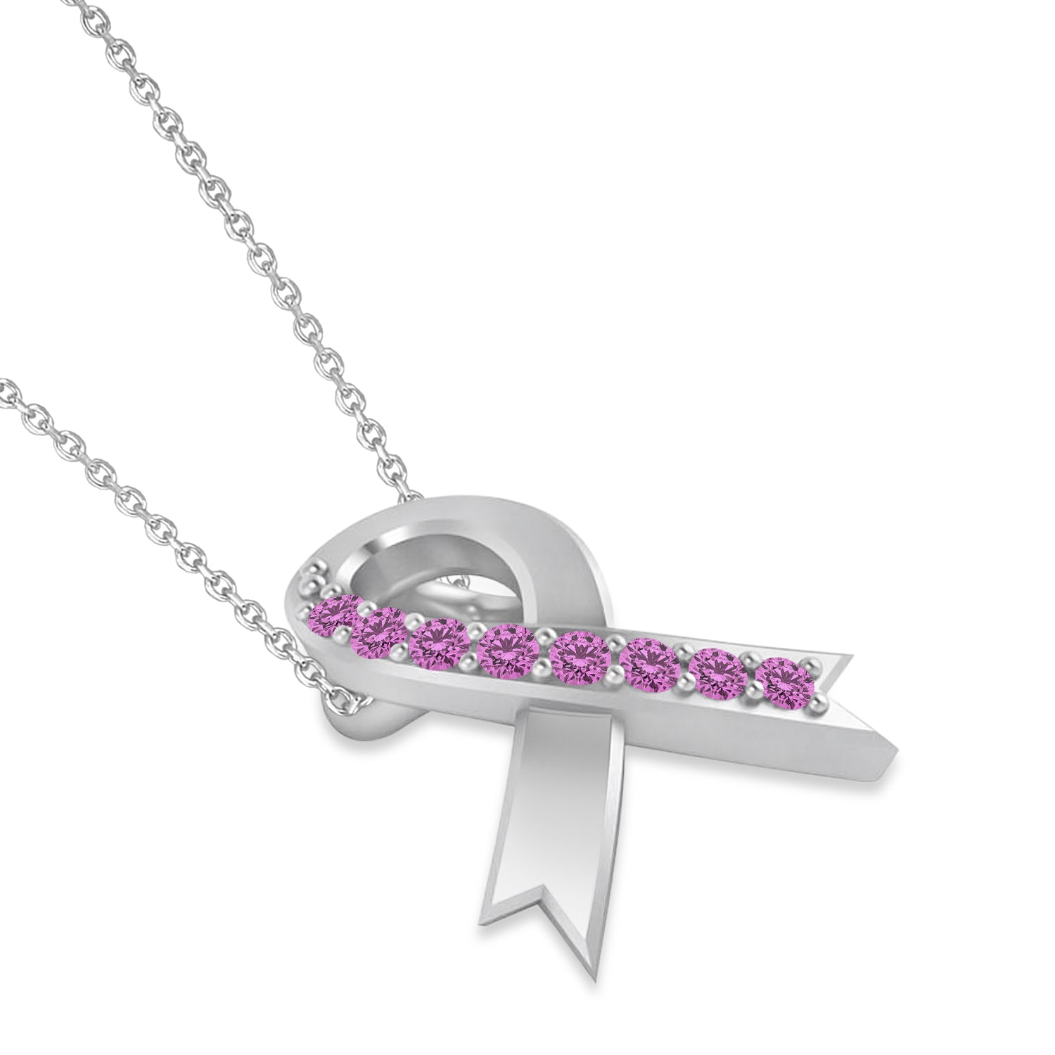 Pink Sapphire Ribbon Awareness Charm Pendant Necklace 14K White Gold (0.16ct)