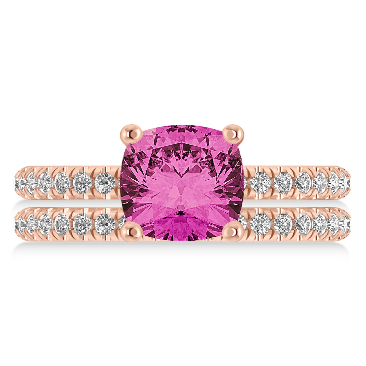 Pink Tourmaline & Diamond Cushion-Set Semi-Eternity Bridal Set 14K Rose Gold (3.22ct)