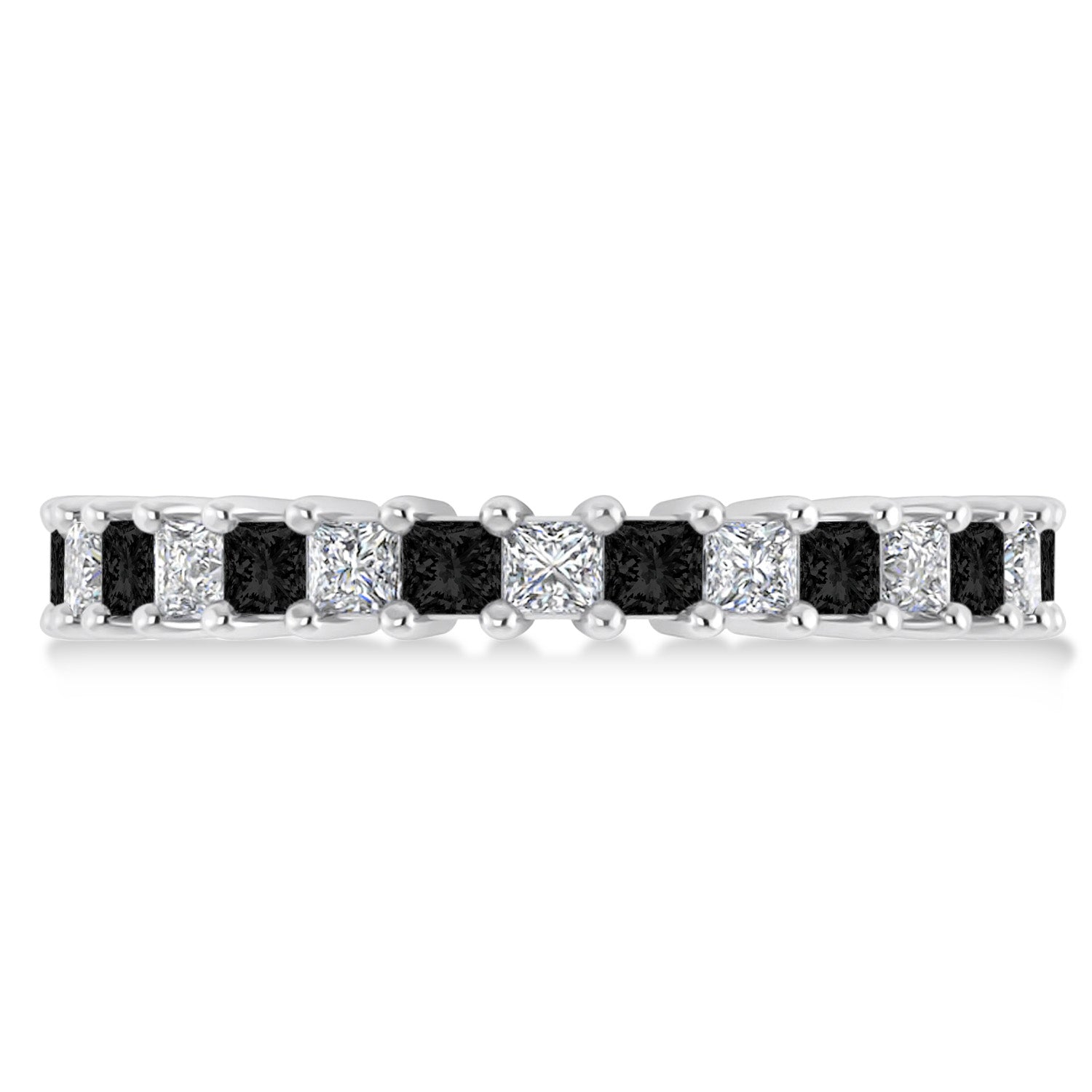 Princess Black & White Diamond Wedding Band 14k White Gold (2.32ct)