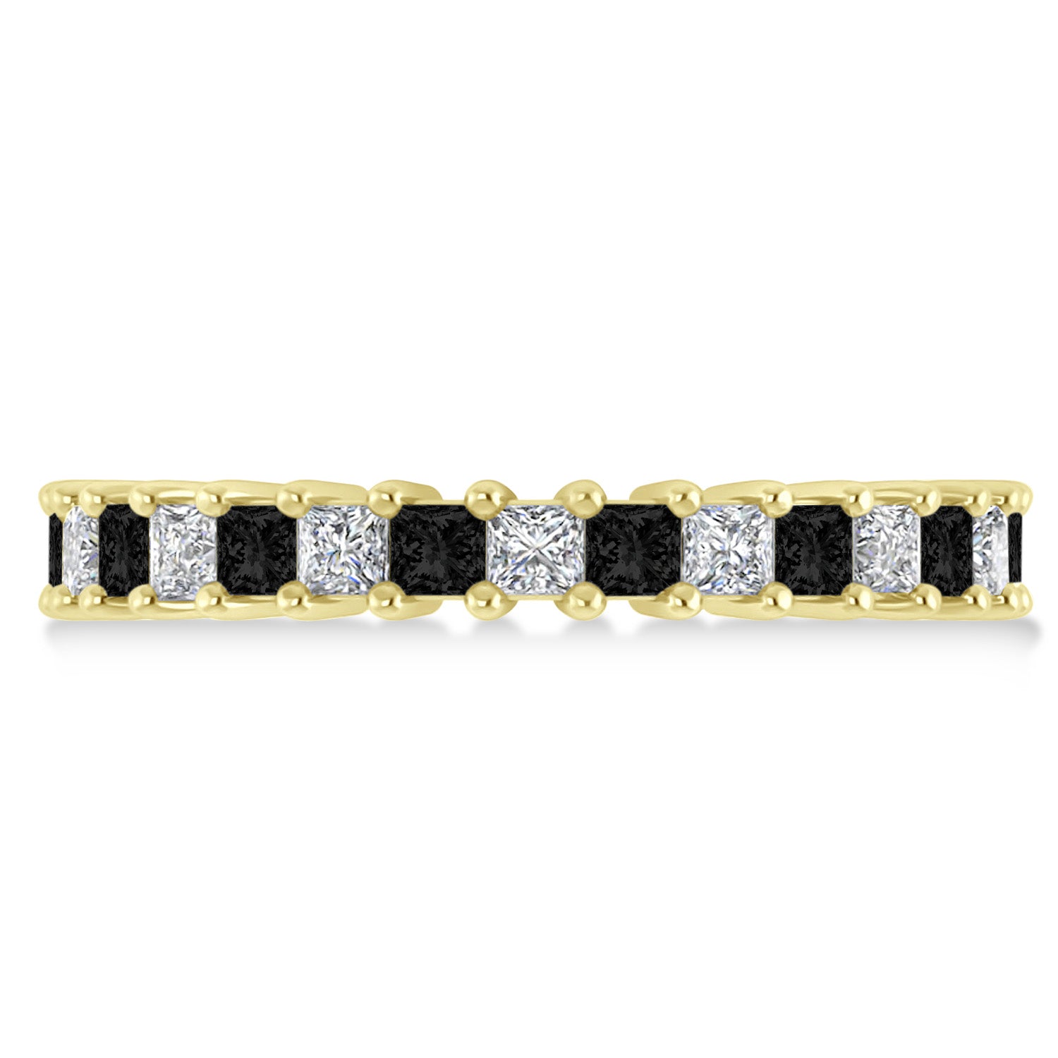 If you're looking for a special wedding band for a special girl, take a look at this princess cut, diamond and black diamond eternity band.