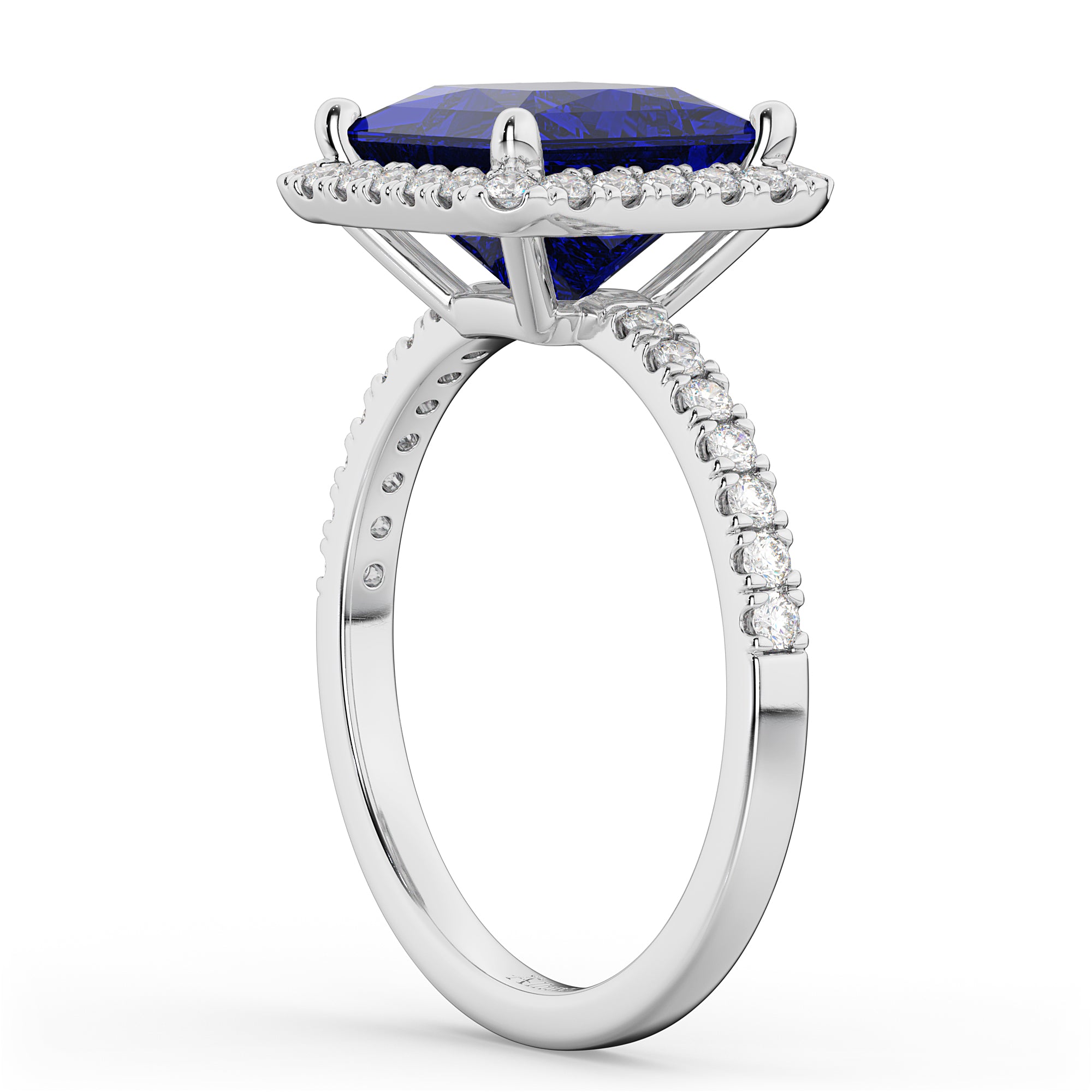 Princess Cut Halo Blue Sapphire & Diamond Engagement Ring 14K White Gold 3.47ct