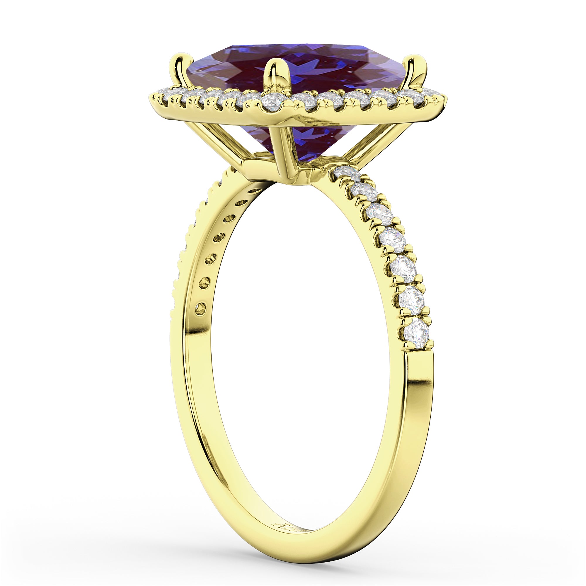 Princess Cut Halo Lab Alexandrite & Diamond Engagement Ring 14K Yellow Gold 3.47ct
