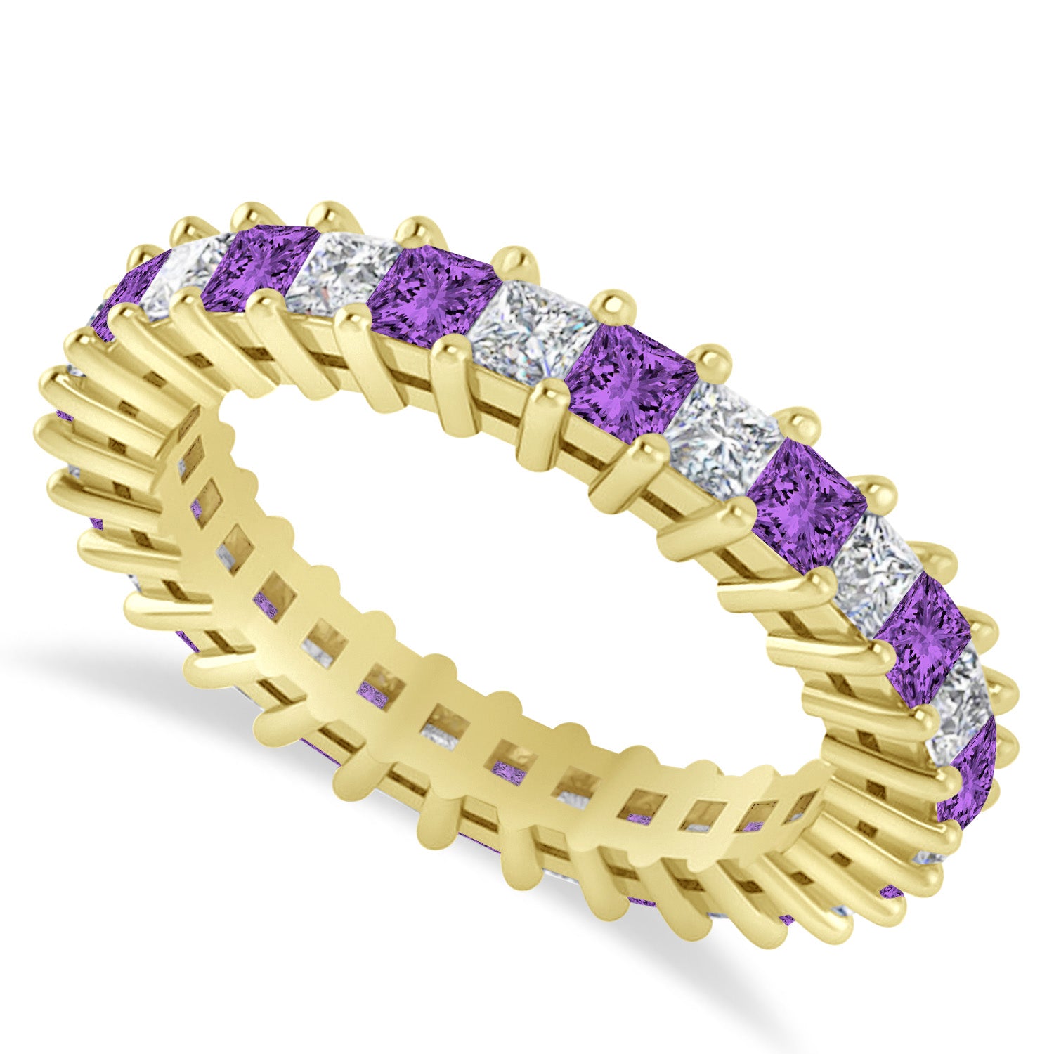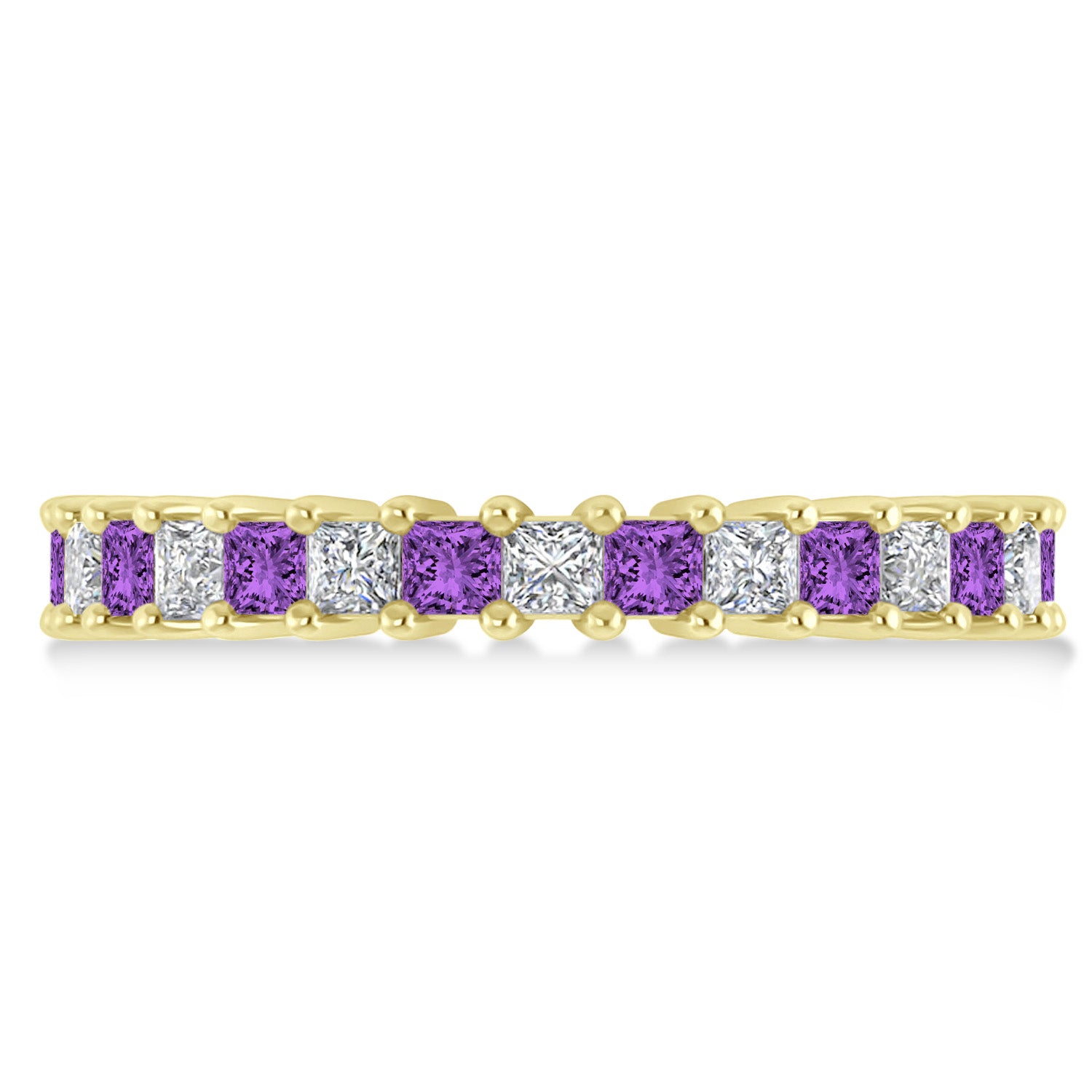 Princess Diamond & Amethyst Wedding Band 14k Yellow Gold (2.32ct)