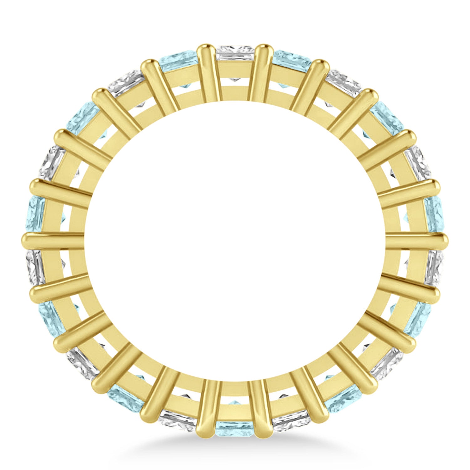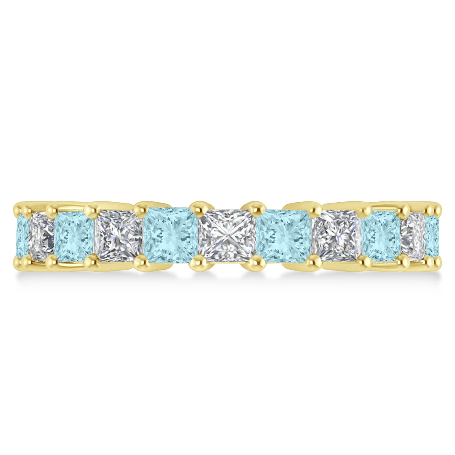 Princess Diamond & Aquamarine Wedding Band 14k Yellow Gold (4.18ct)