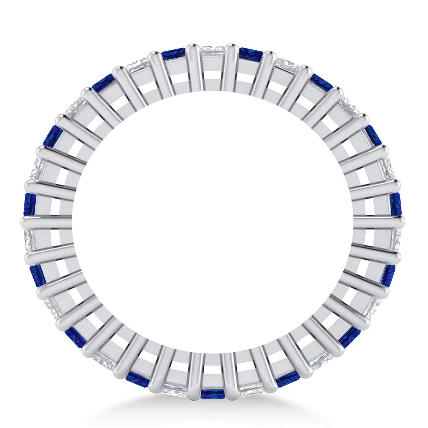 Princess Diamond & Blue Sapphire Wedding Band 14k White Gold (2.32ct)