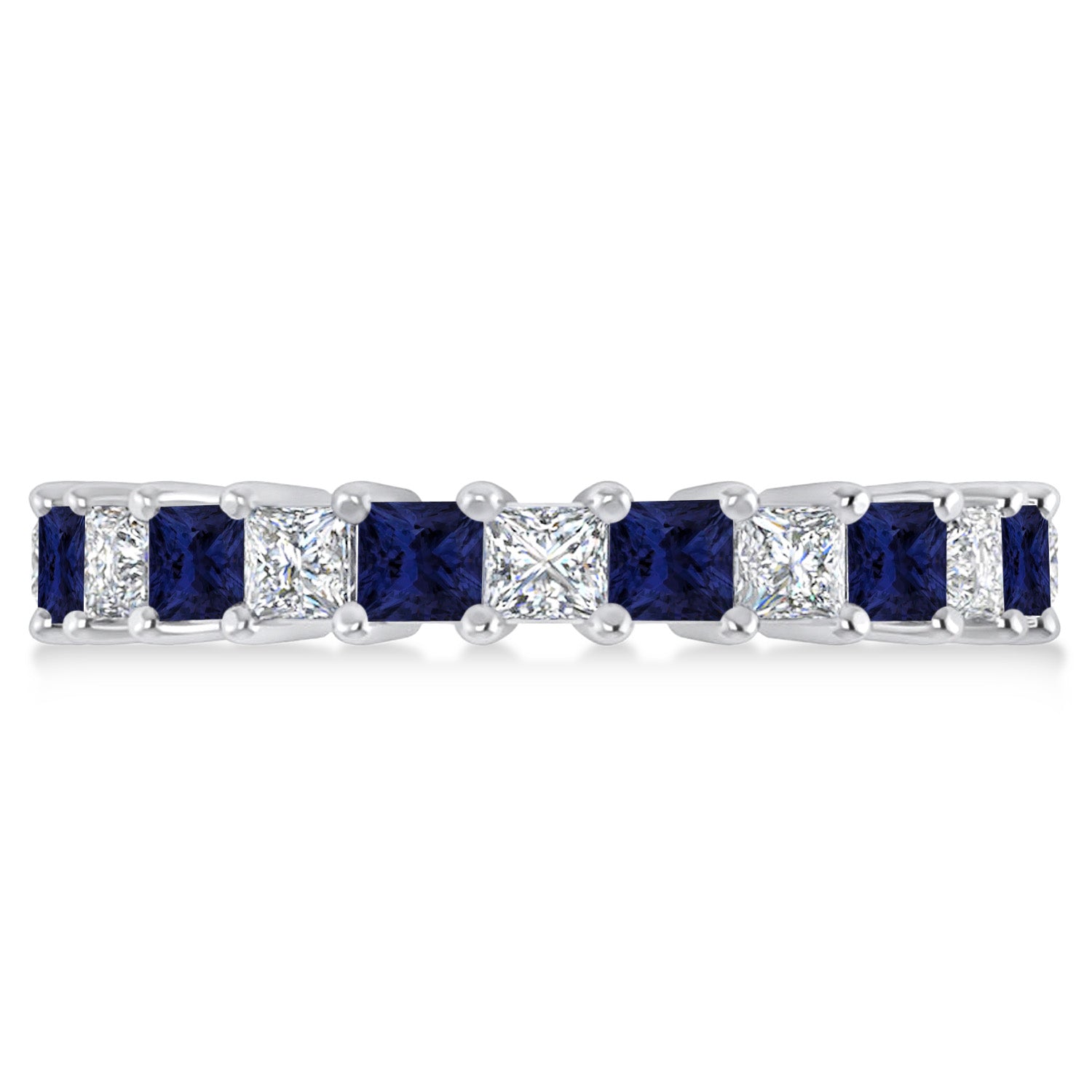 Princess Diamond & Blue Sapphire Wedding Band 14k White Gold (3.12ct)
