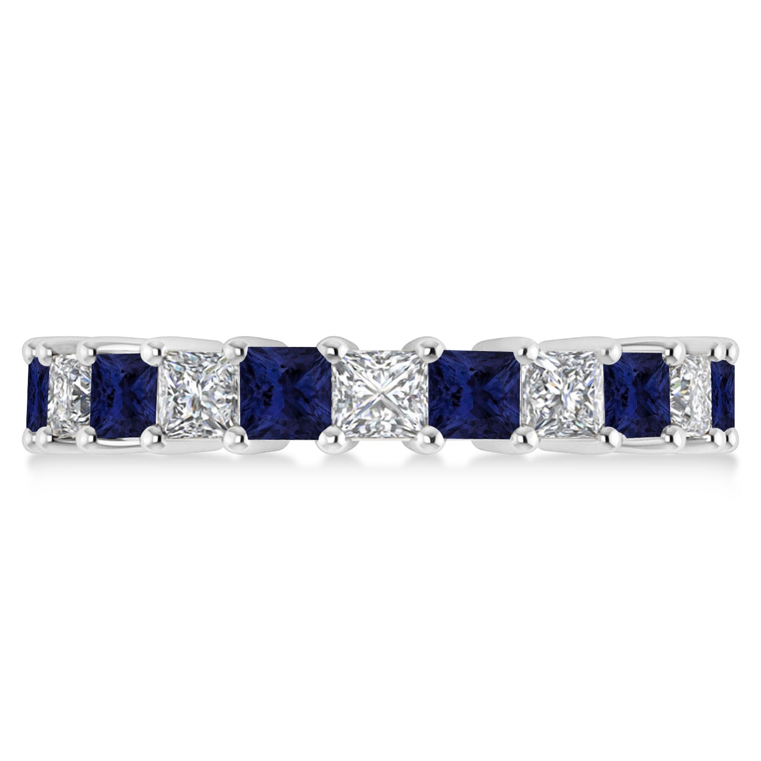Princess Diamond & Blue Sapphire Wedding Band 14k White Gold (4.18ct)