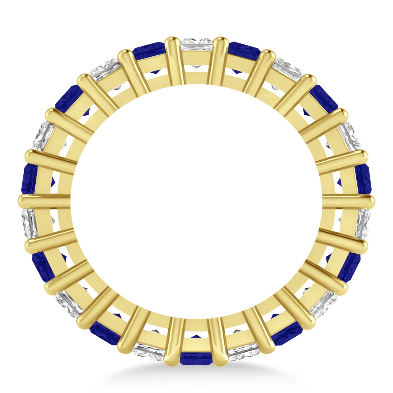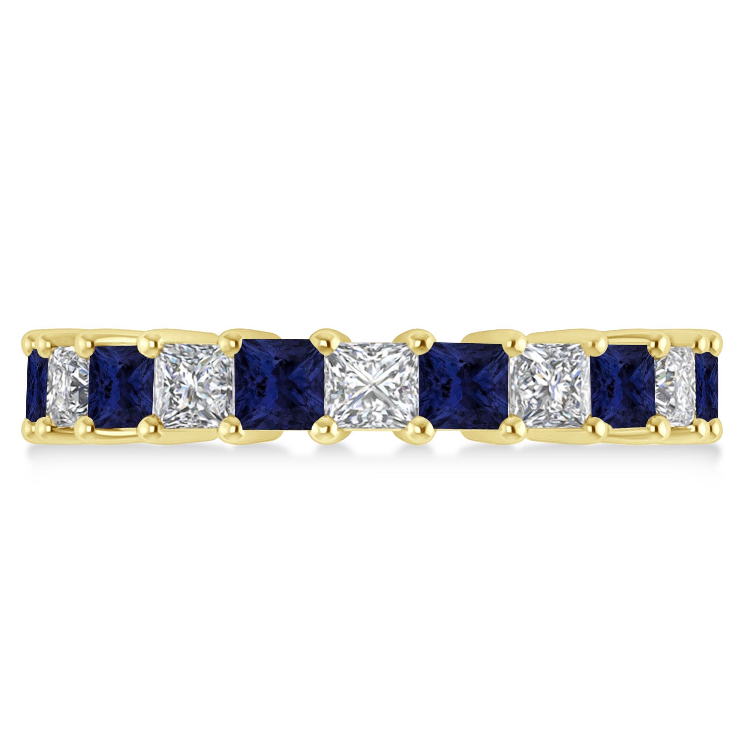 Princess Diamond & Blue Sapphire Wedding Band 14k Yellow Gold (4.18ct)