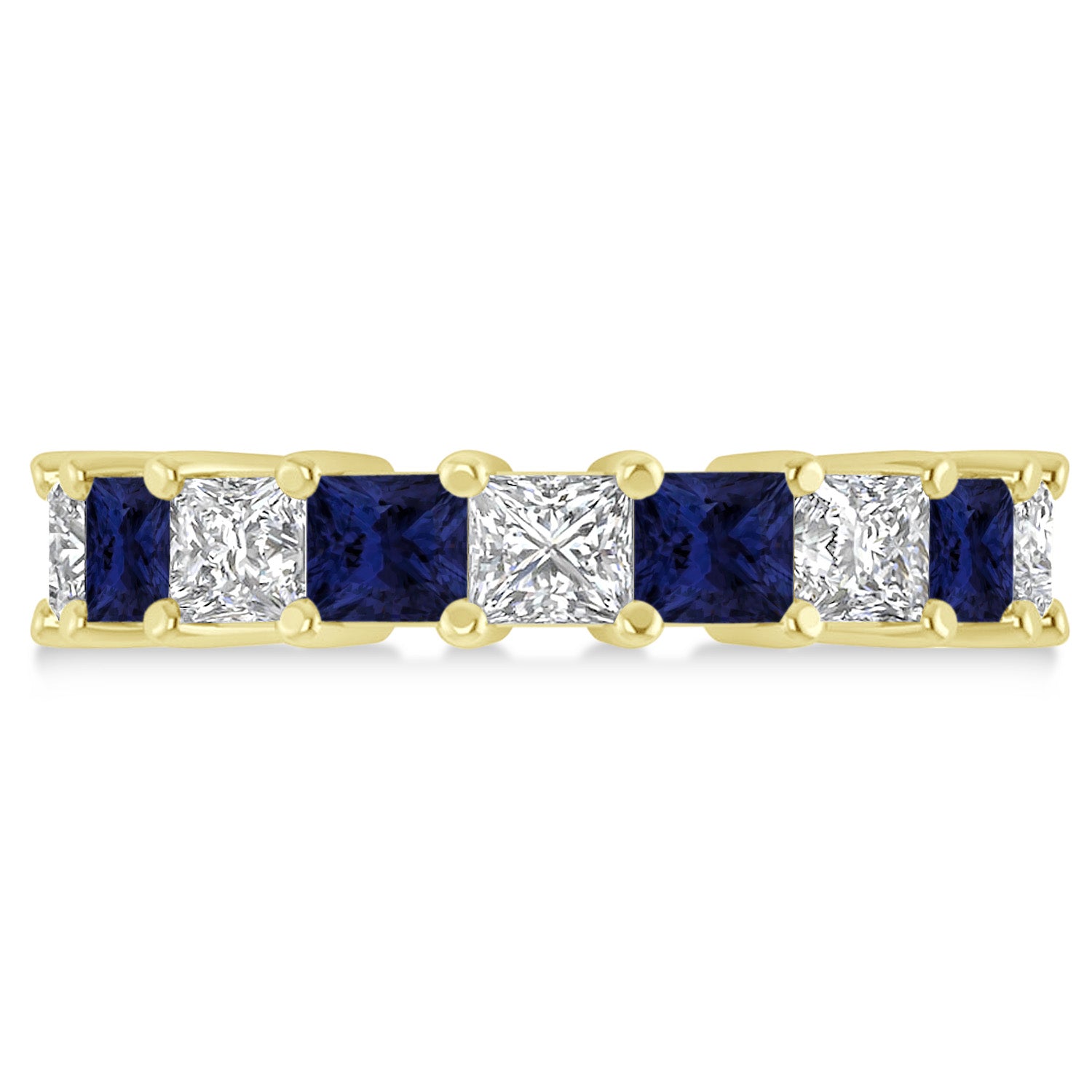 Princess Diamond & Blue Sapphire Wedding Band 14k Yellow Gold (5.94ct)