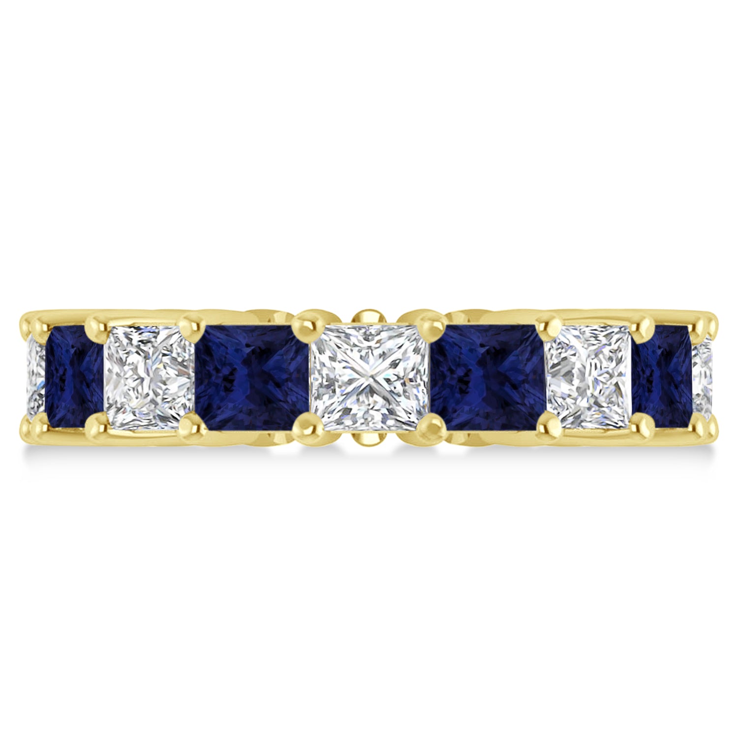 Princess Diamond & Blue Sapphire Wedding Band 14k Yellow Gold (7.17ct)