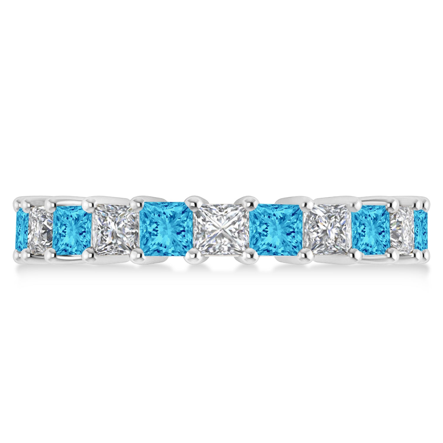 Princess Diamond & Blue Topaz Wedding Band 14k White Gold (4.18ct)