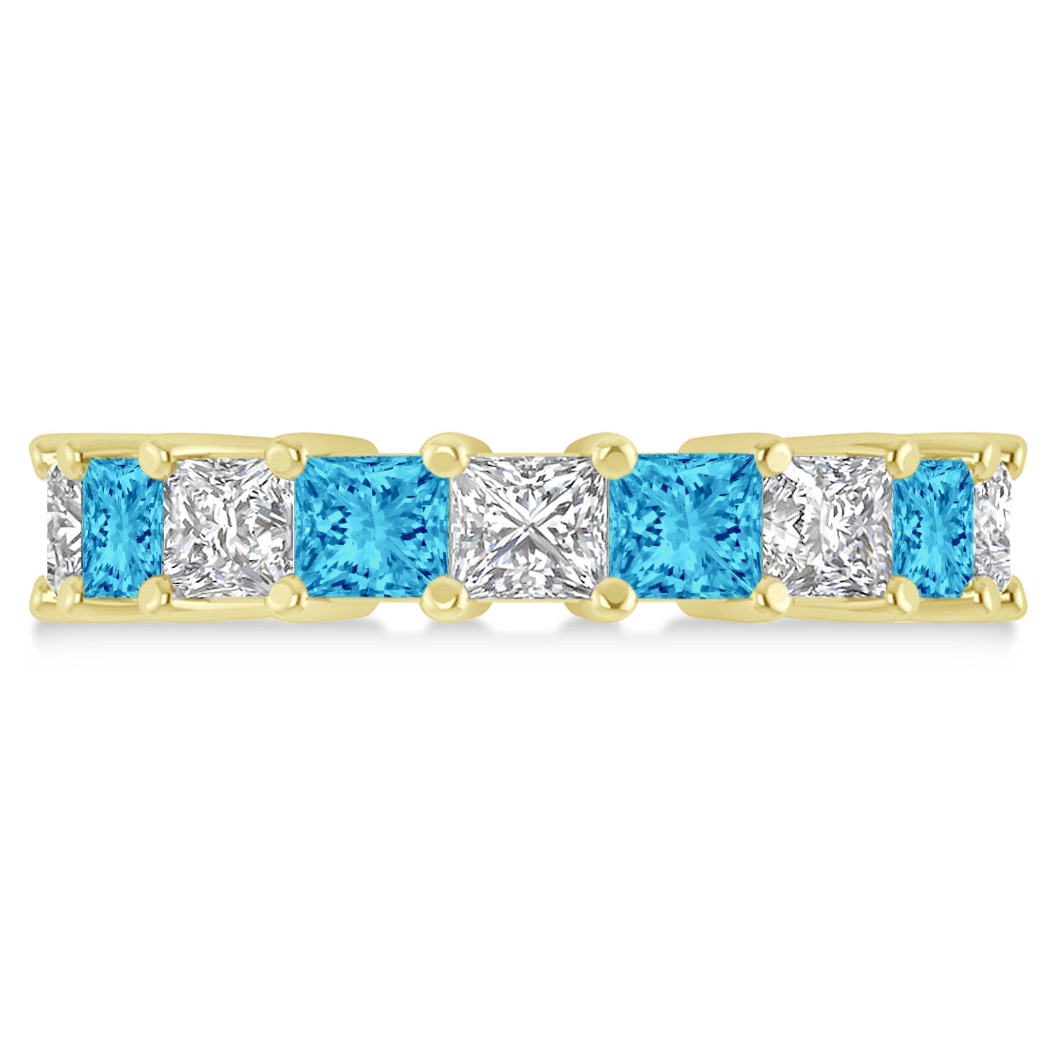 Princess Diamond & Blue Topaz Wedding Band 14k Yellow Gold (5.94ct)